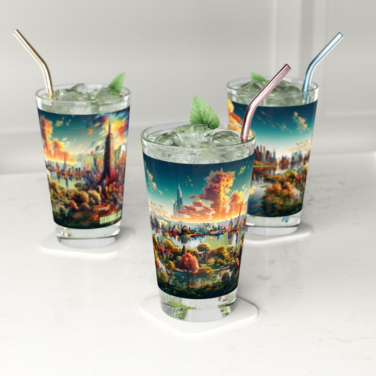 Pint Glass, 16oz Dreamlike Illustration of a City New York 004