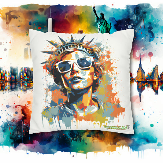 Pillow Faux Suede Square New York Skyline Watercolor Inspired Statue of Liberty NY 01 03