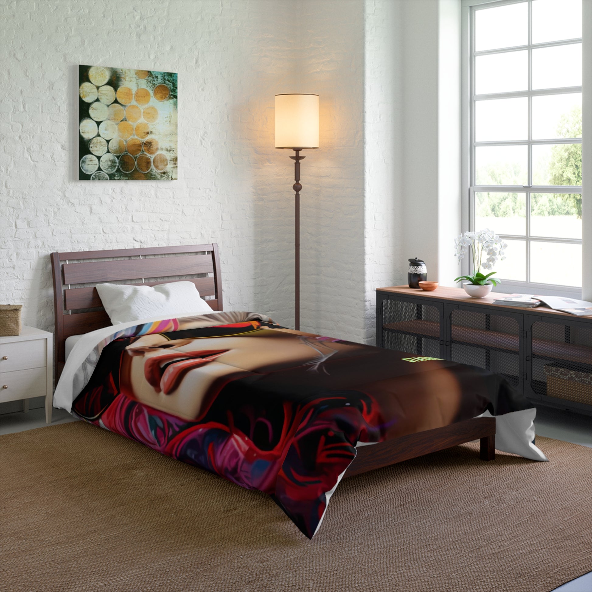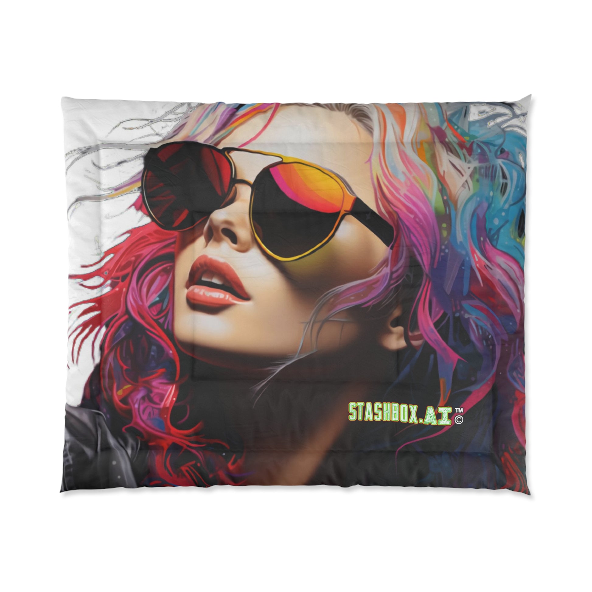 Transform your bedroom into a haven of style and comfort with Stashbox.ai Art Merch Shop's latest creation – the Bedding Comforter Beautiful Model with Sunglasses Drawn with Rainbow Ink #013. 🌈✨ Immerse yourself in the world of artistic expression and unparalleled comfort with four unique designs that redefine home decor.