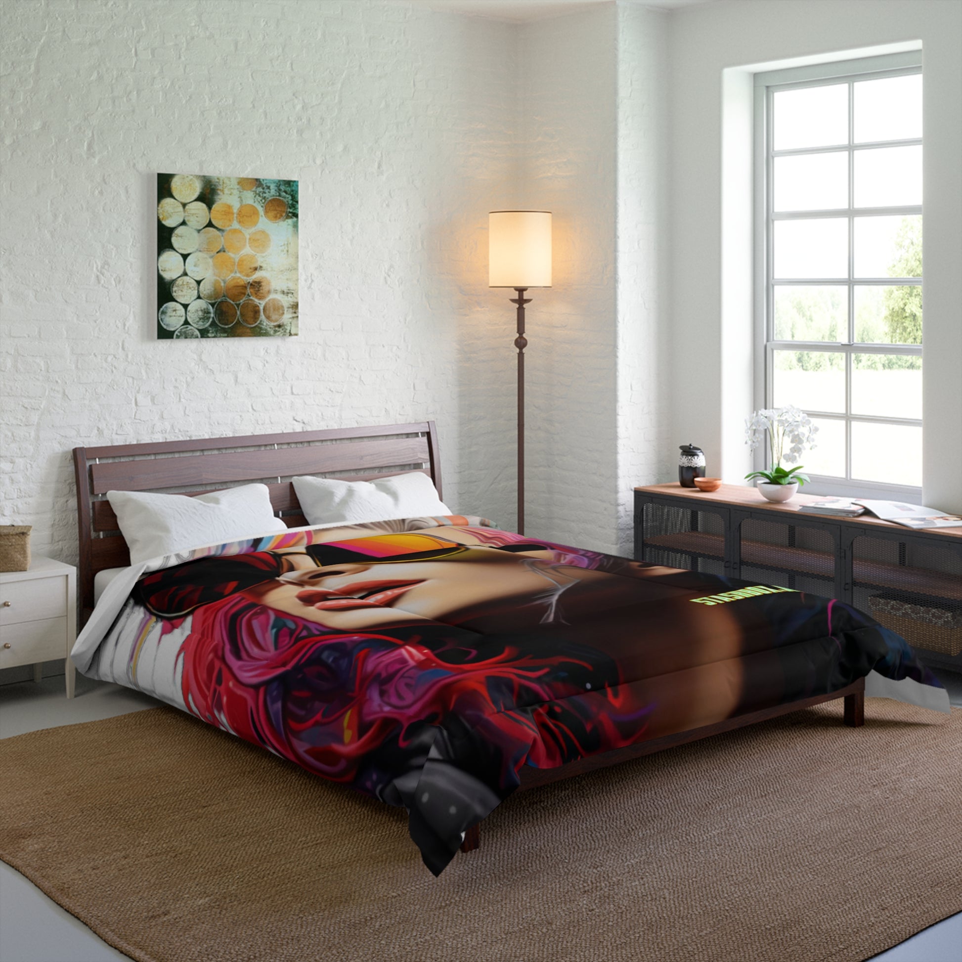 Bedding Comforter Beautiful Model w/Sunglasses Drawn with Rainbow Ink #013