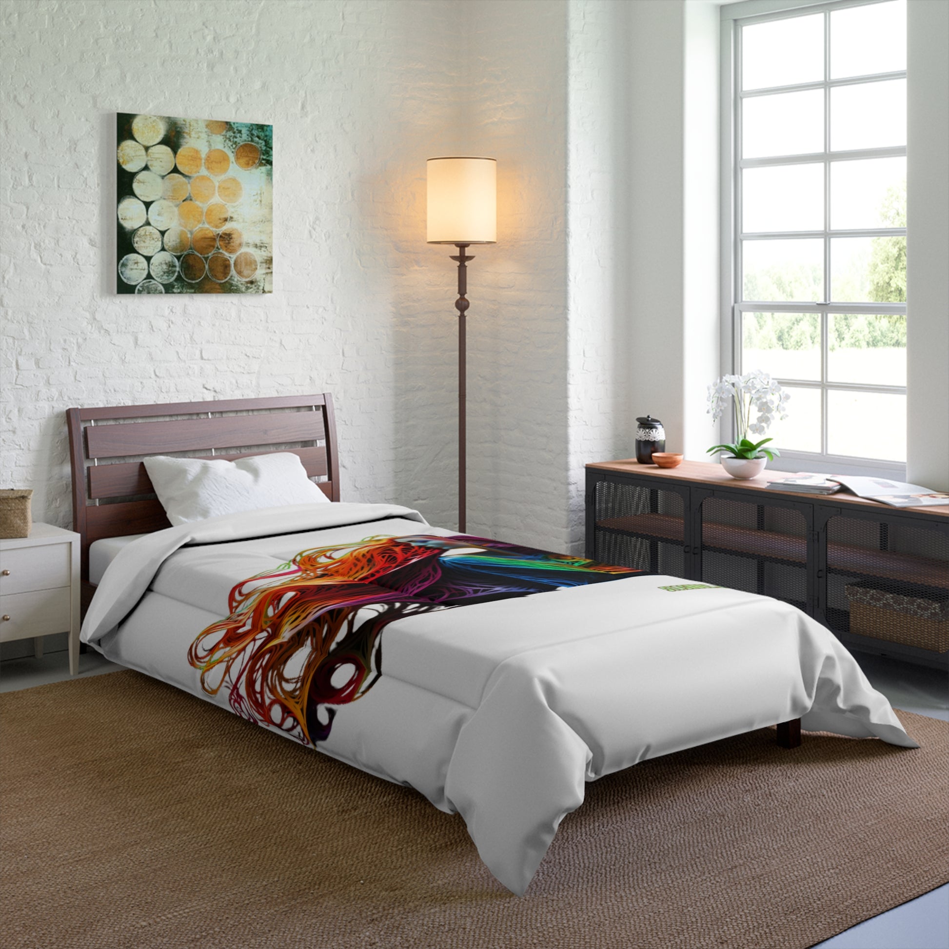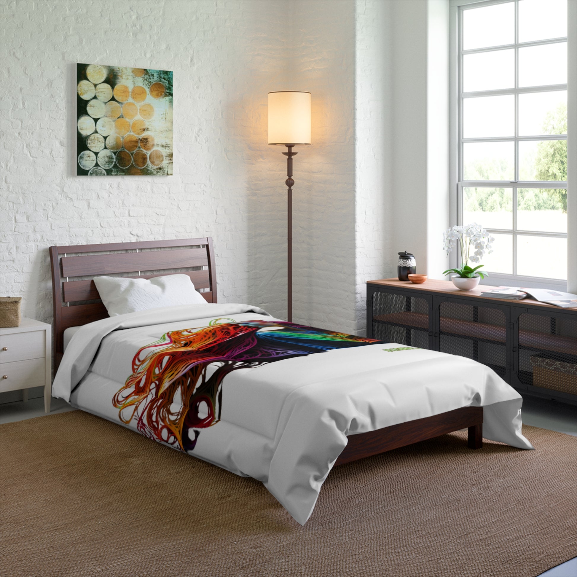 4️⃣ Rainbow Colored Girl on Home Decor Bedding Comforter: