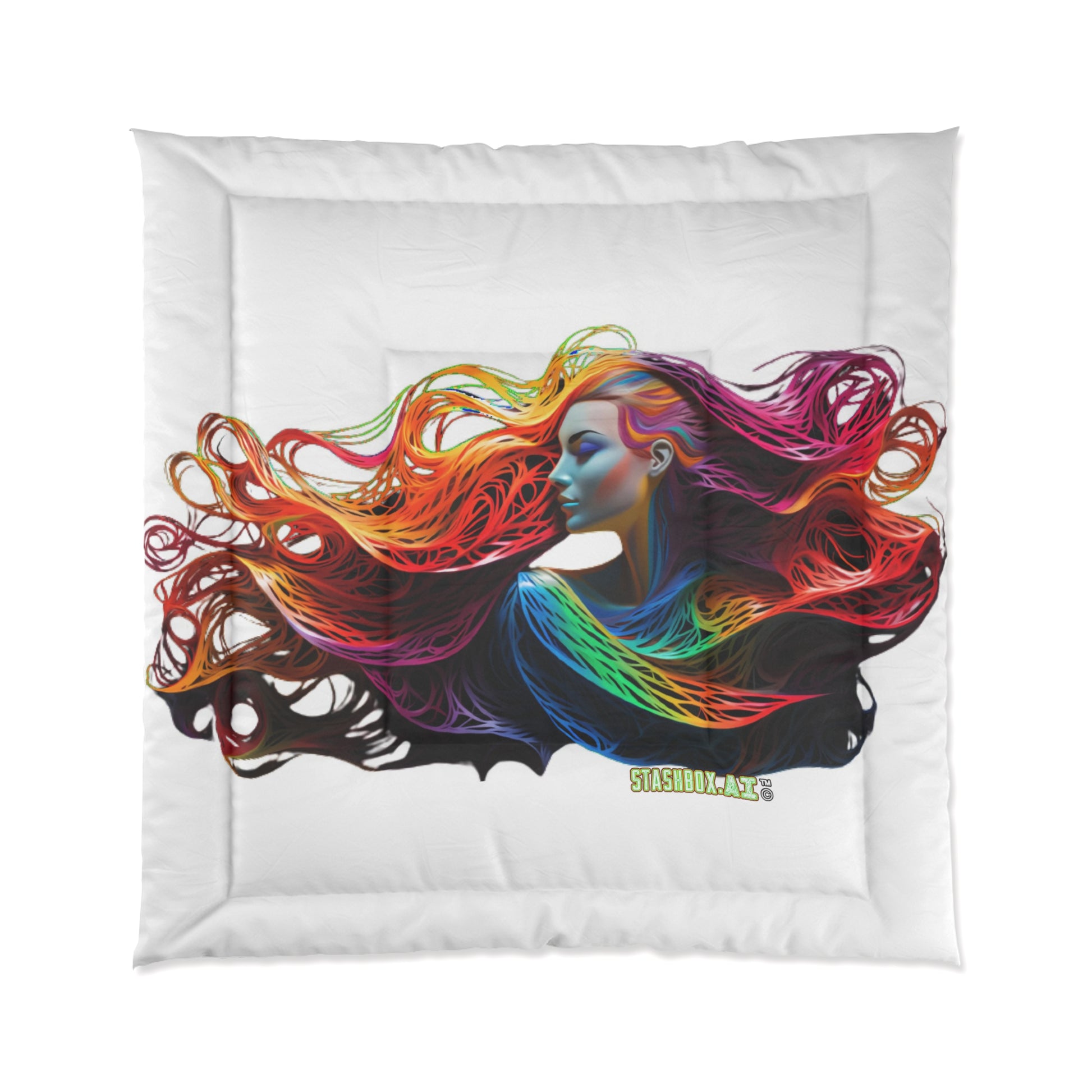 At Stashbox.ai Art Merch Shop, we believe in merging art and comfort to redefine your living spaces. The Bedding Comforter Beautiful Models Drawn with Rainbow Ink #015 collection exemplifies our commitment to bringing contemporary art into your daily life. Transform your sleep space with these unique and visually stunning comforters and sleeping mats.