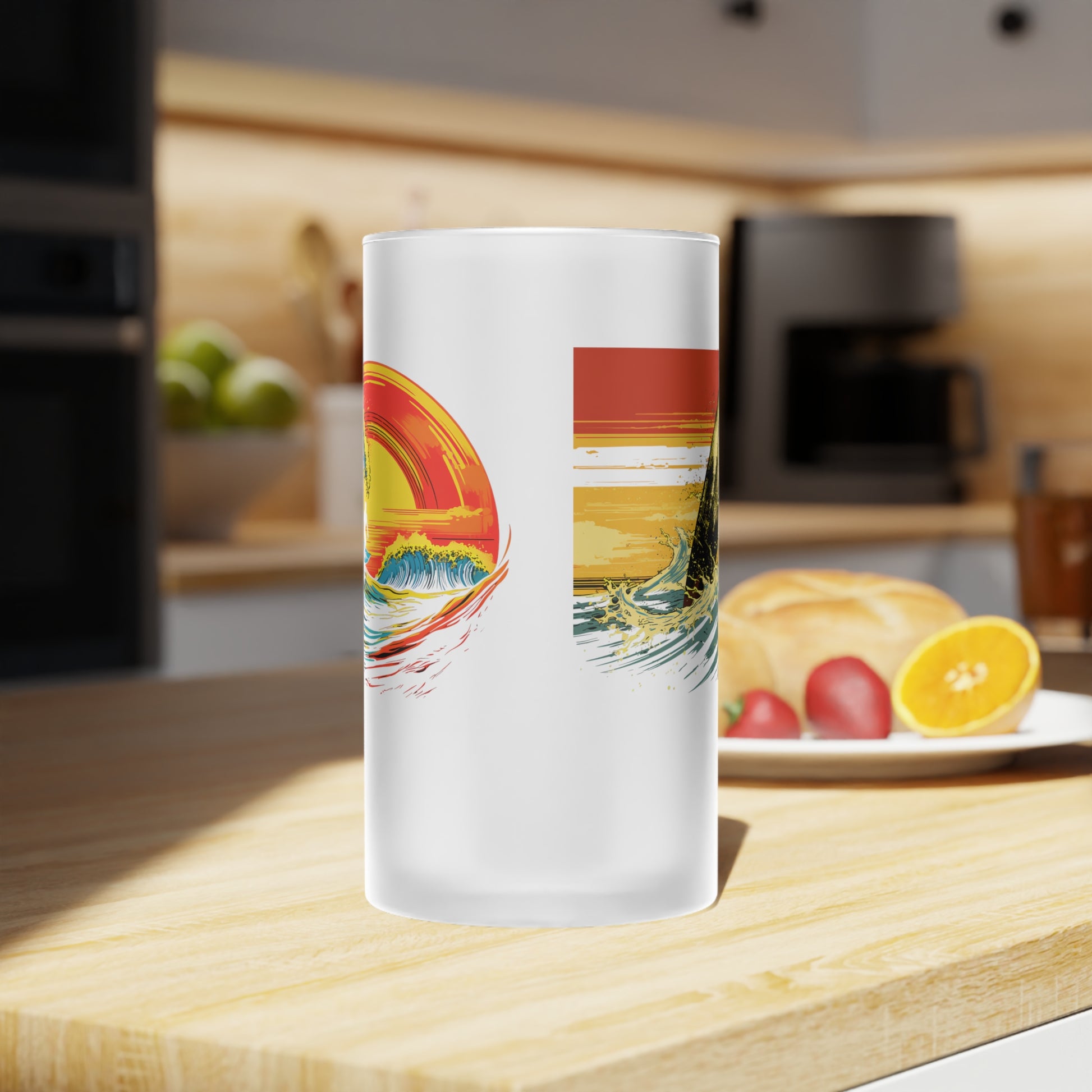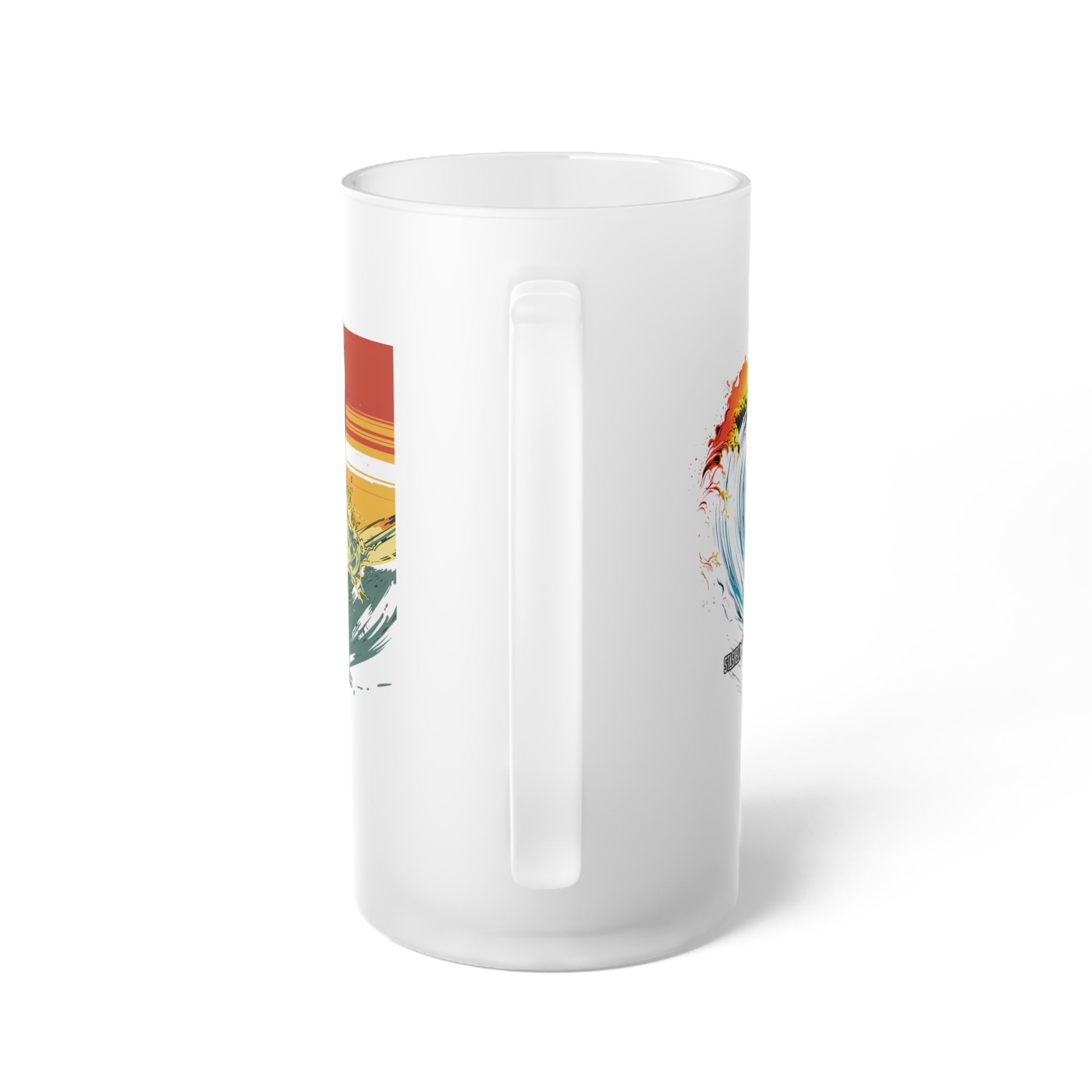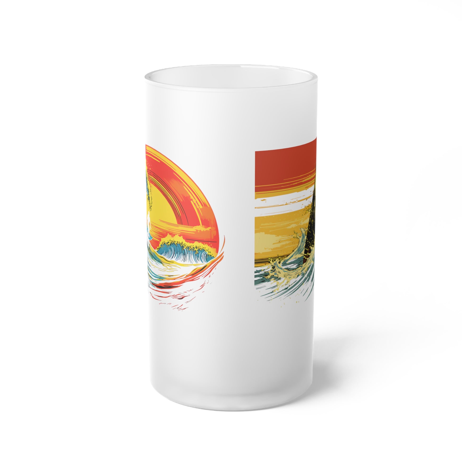 Frosted Glass Beer Mug - Classic Surreal Surfing, 2 Designs on 1 - Waves 066
