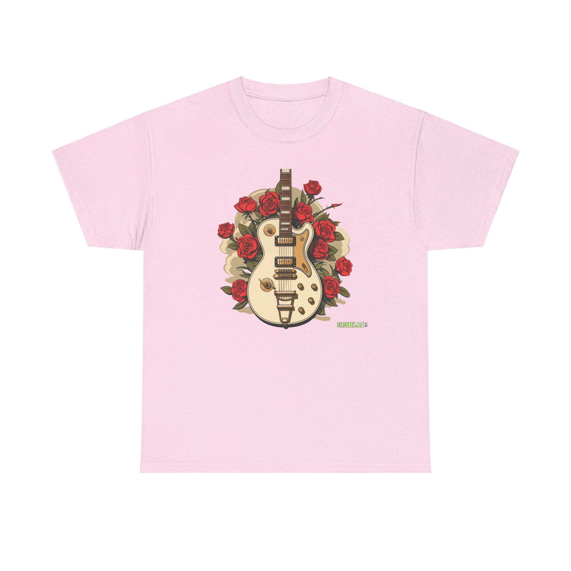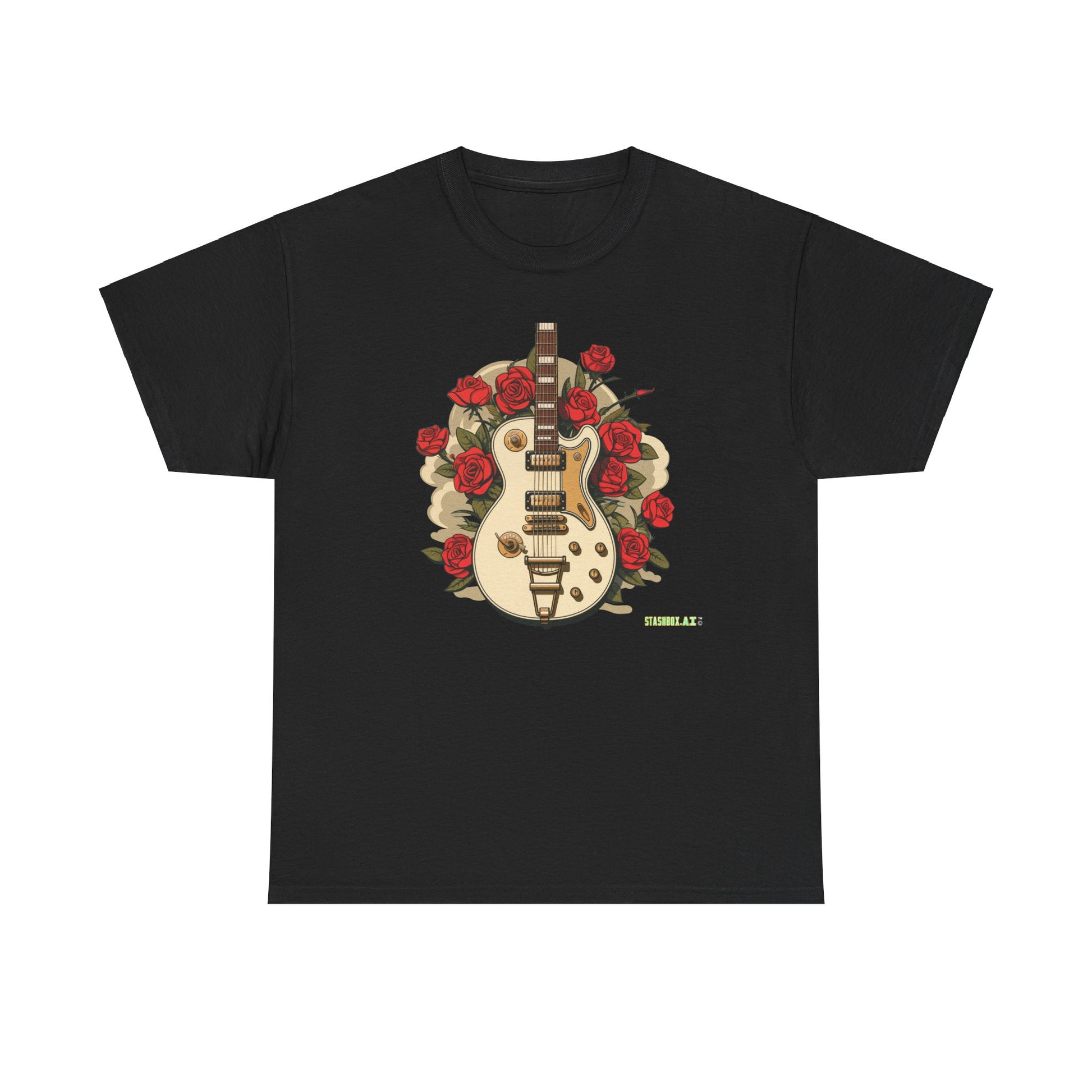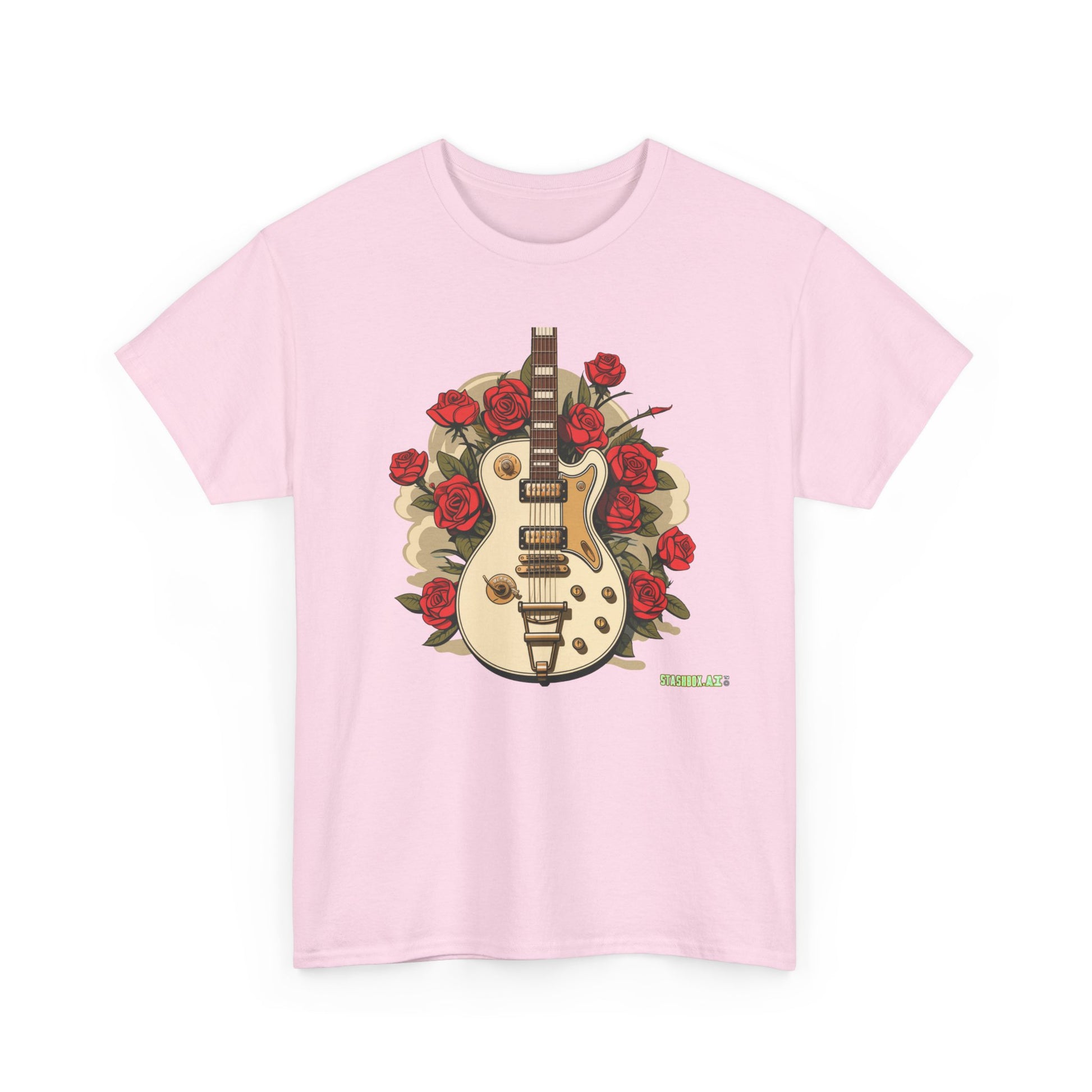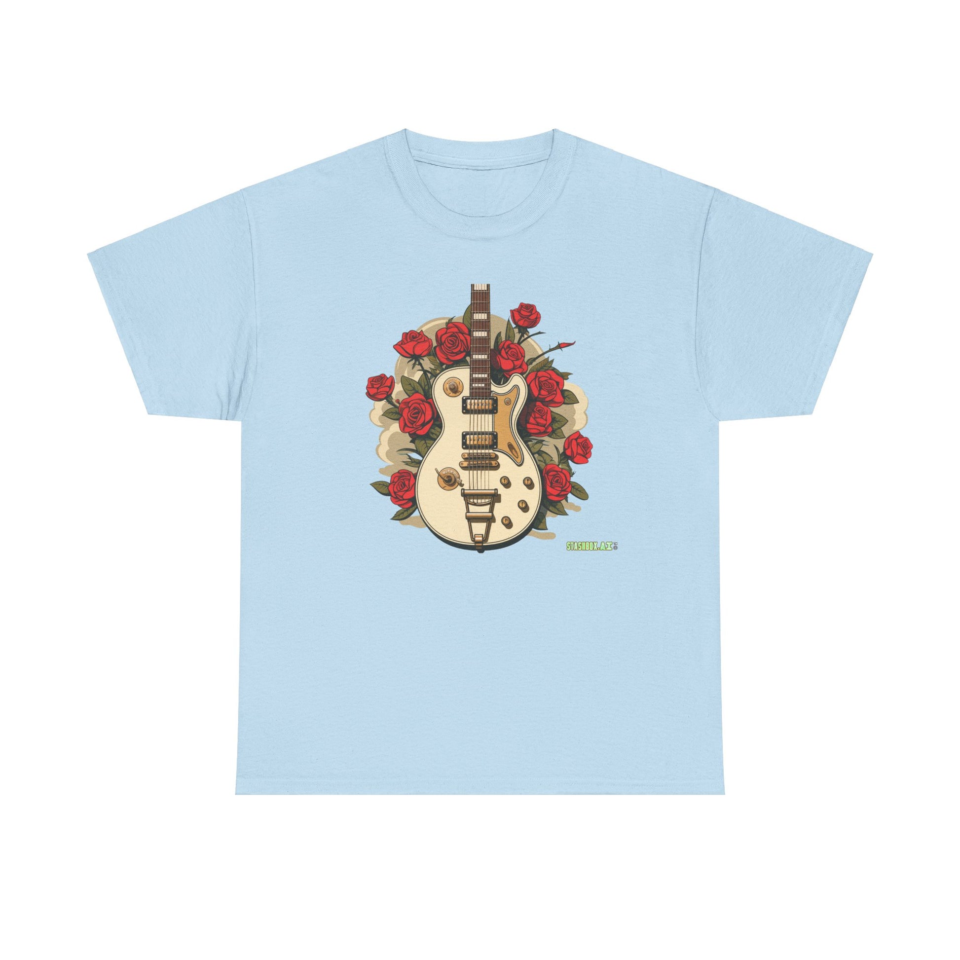 Unisex Heavy Cotton Tshirt Stylish Roses and Guitar 003