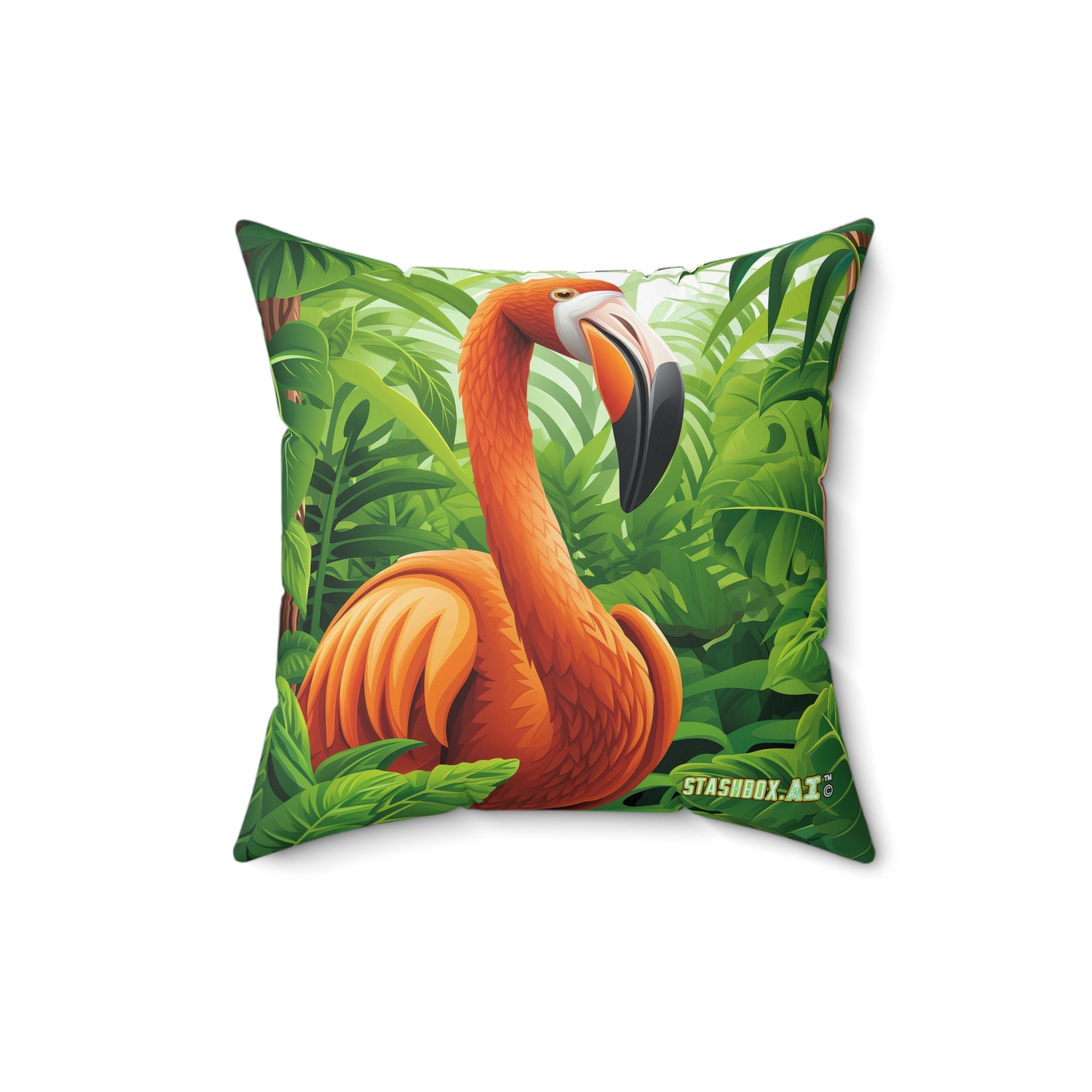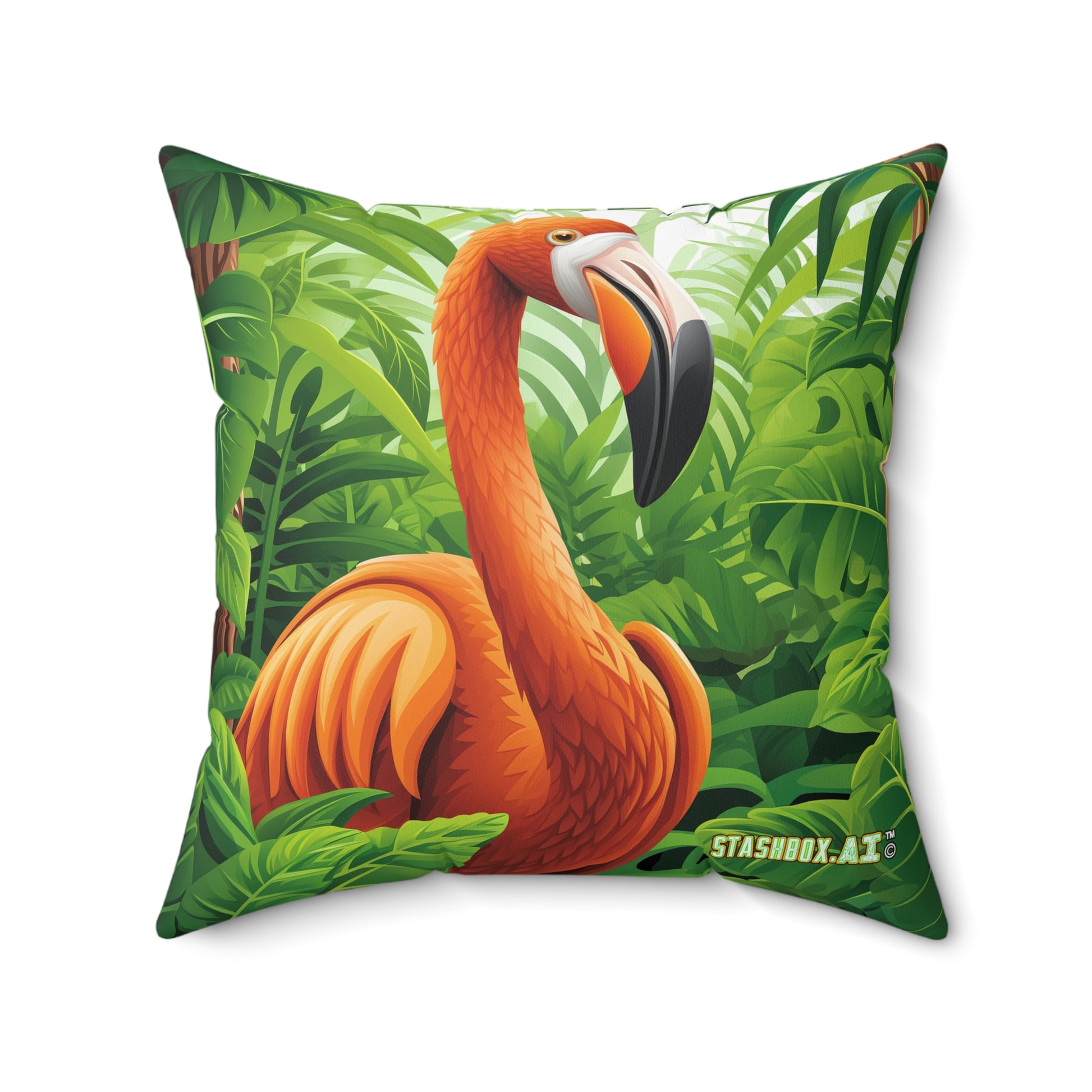 Faux Suede Square Pillow Flamingo Latte art and Tropical Scene 001 002