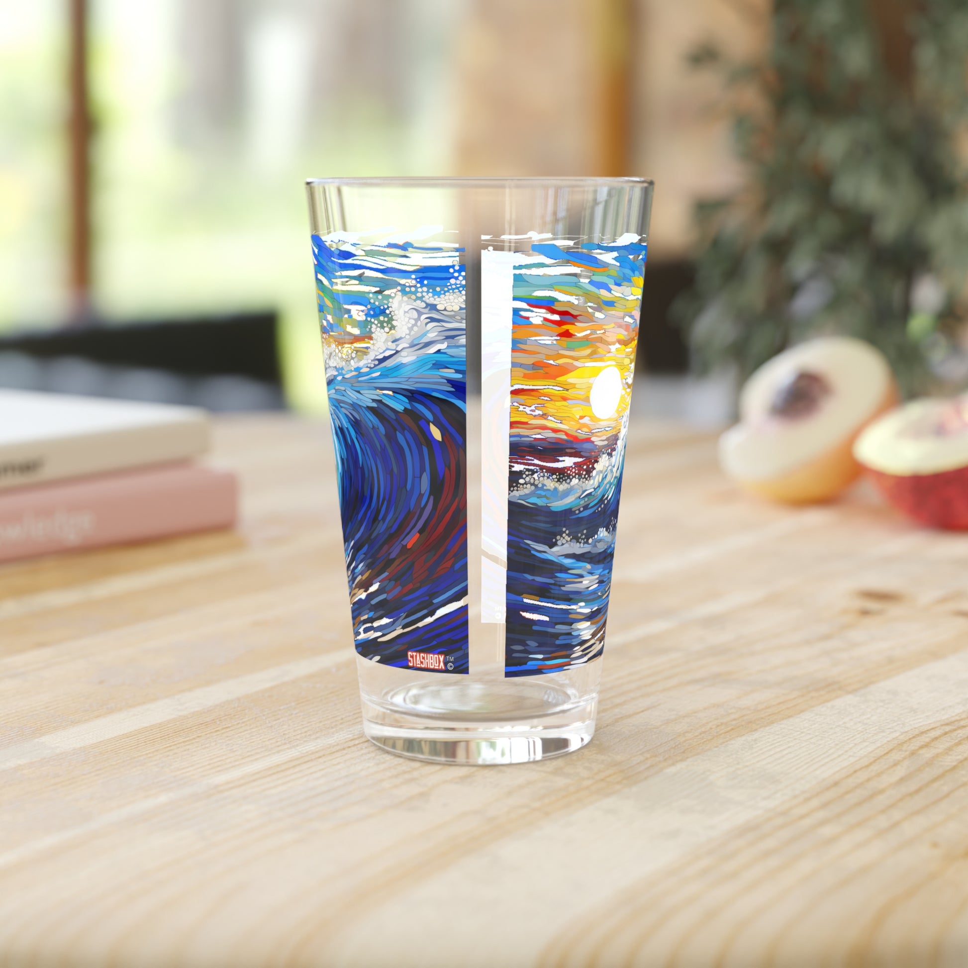 Pint Glass 16oz Huge Ocean Wave Paint by Number Style, Waves 056