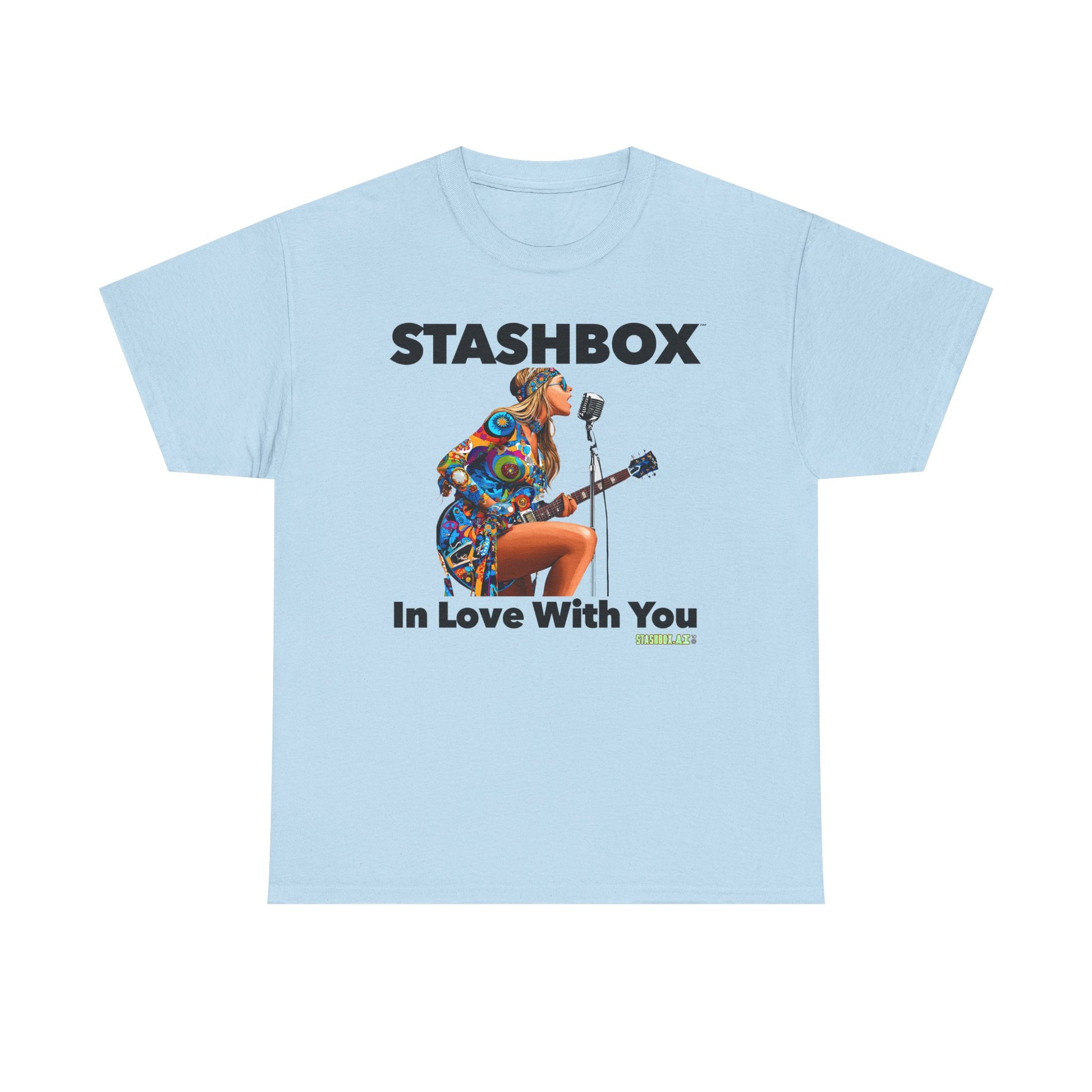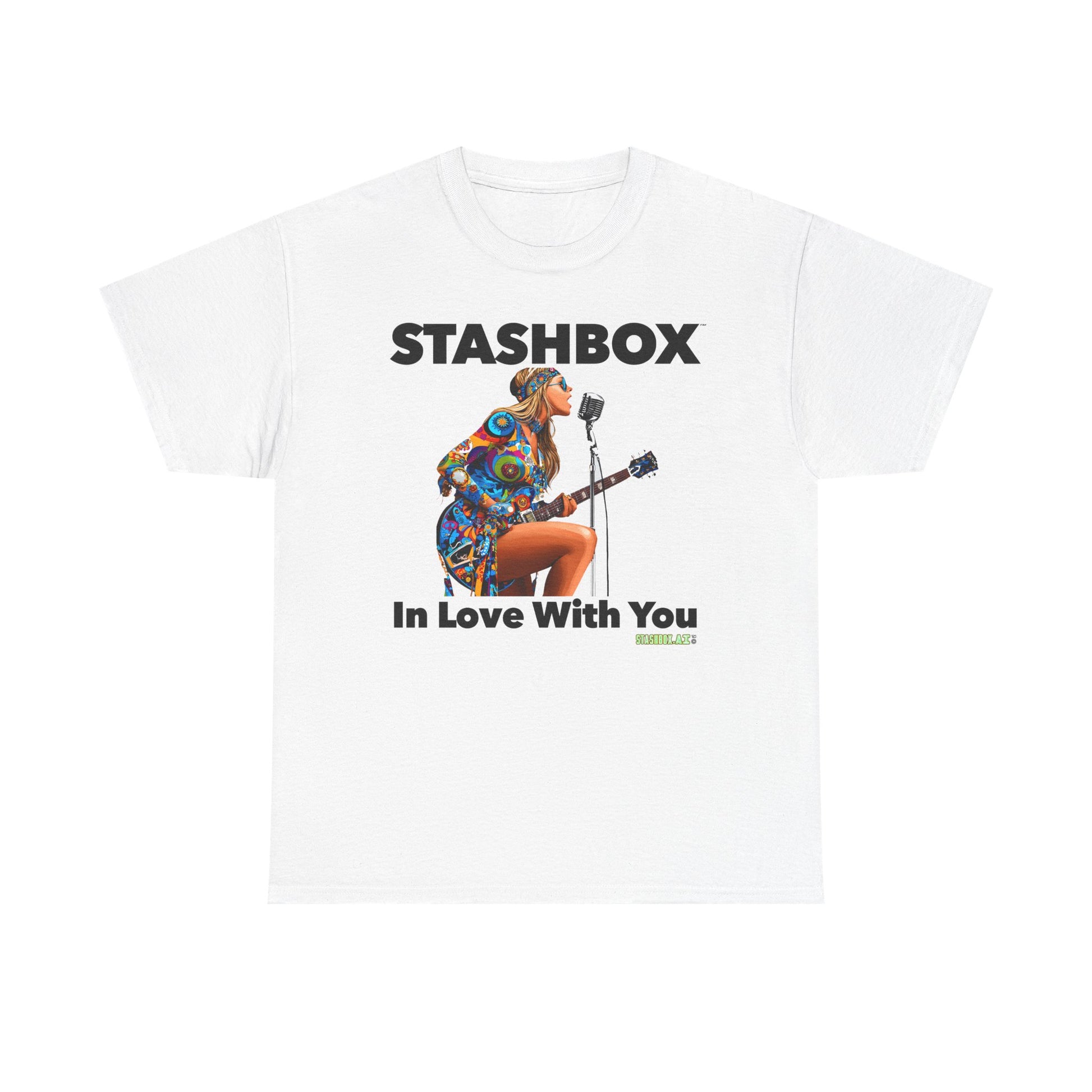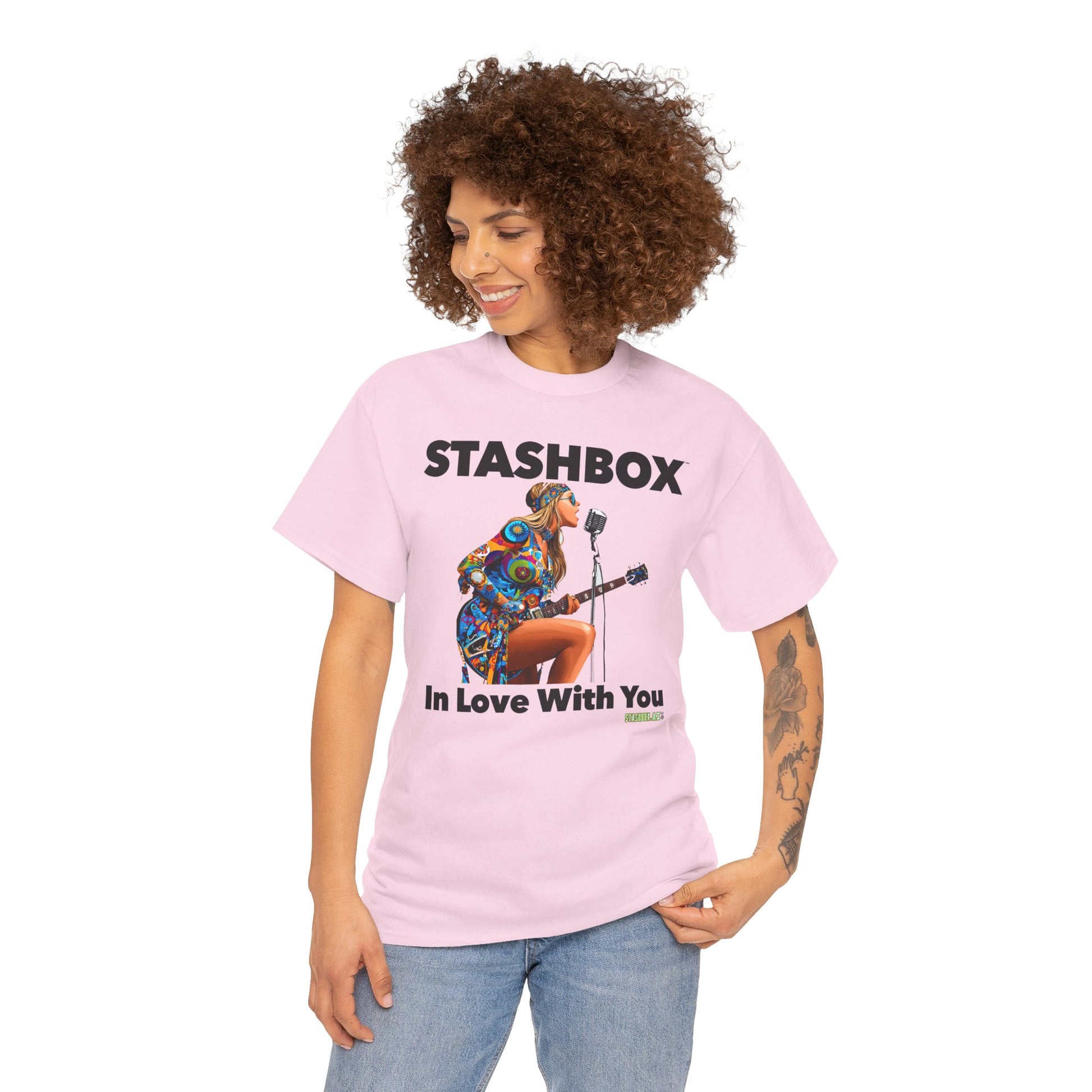 Turn heads and turn up the volume with the official "In Love With You" STASHBOX t-shirt. Featuring a vibrant, psychedelic-inspired artwork of a fierce female guitarist mid-performance, this design bursts with color, passion, and retro soul. Perfect for music lovers, festival goers, and collectors of iconic band merch.