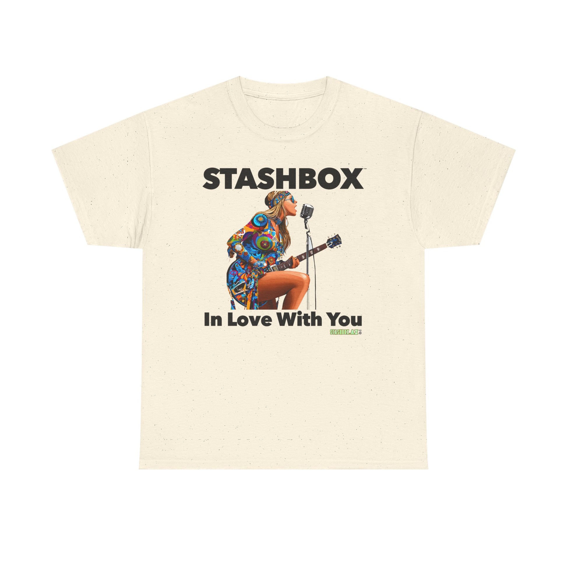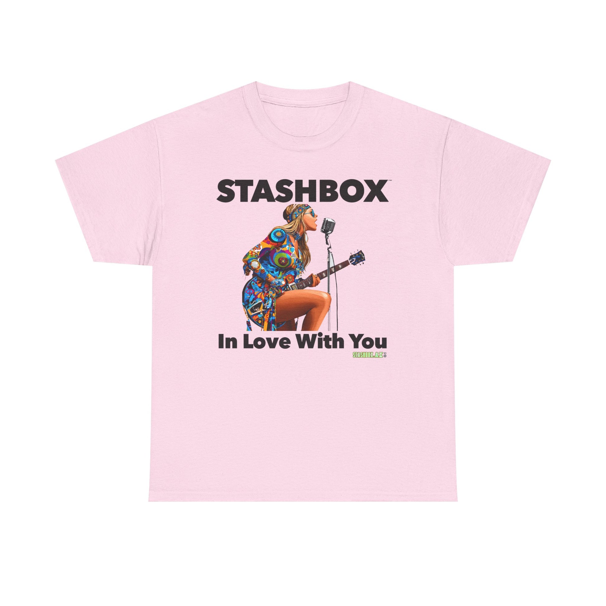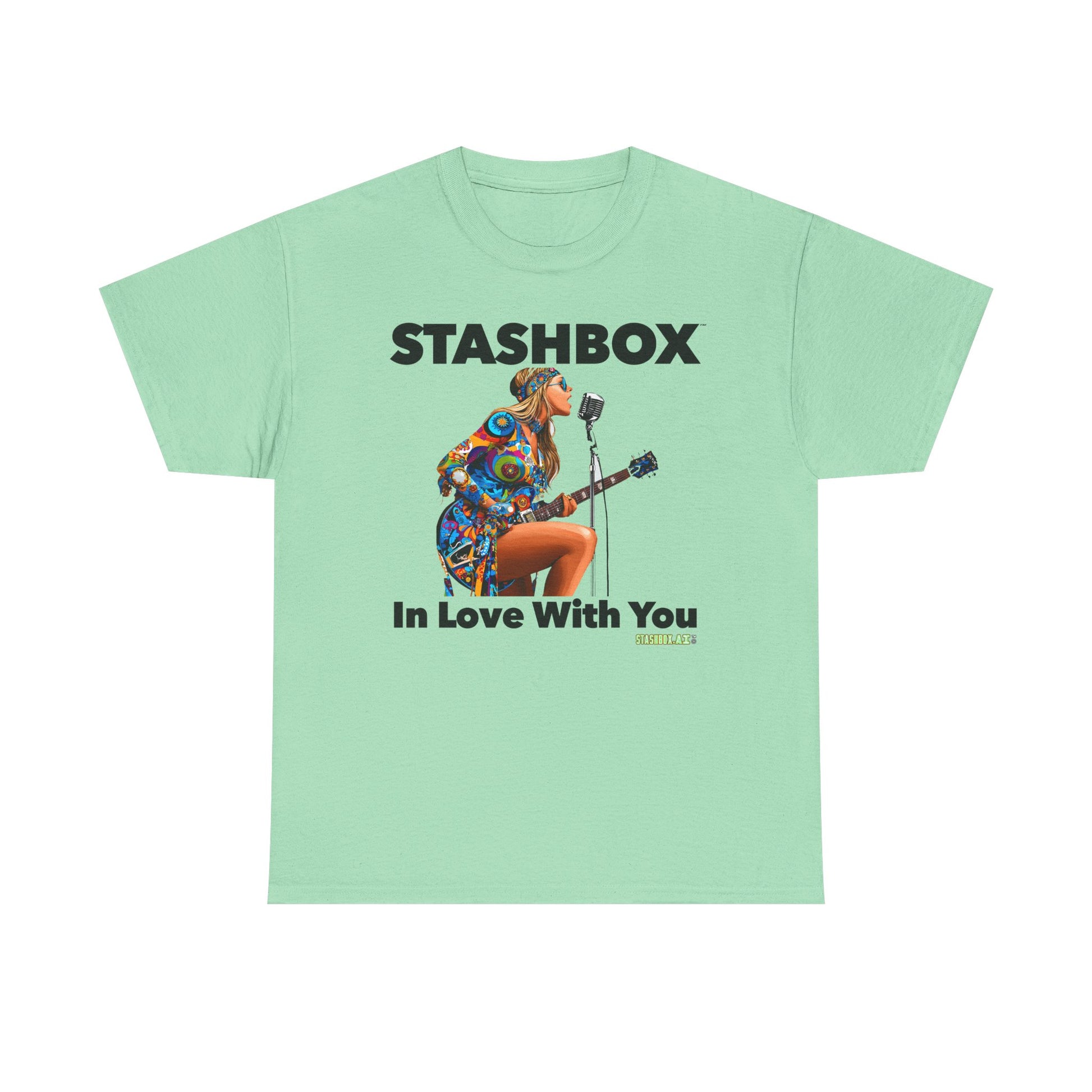 Turn heads and turn up the volume with the official "In Love With You" STASHBOX t-shirt. Featuring a vibrant, psychedelic-inspired artwork of a fierce female guitarist mid-performance, this design bursts with color, passion, and retro soul. Perfect for music lovers, festival goers, and collectors of iconic band merch.