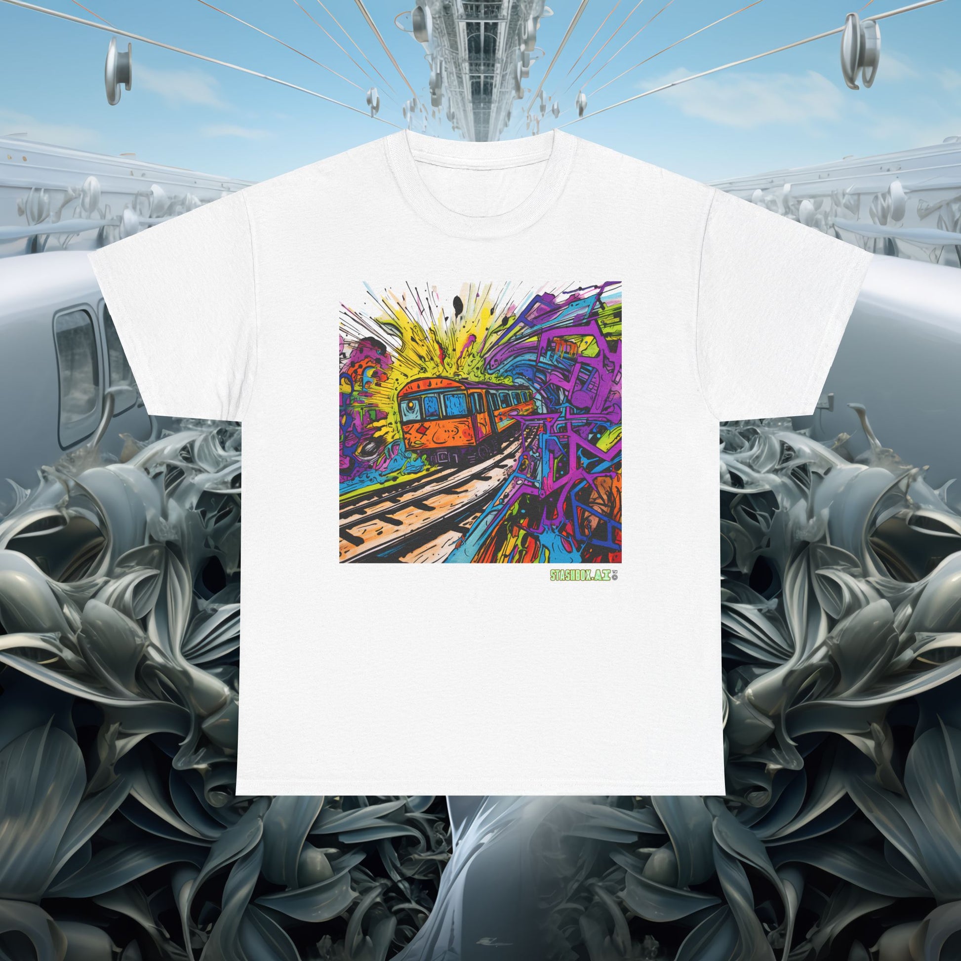 Insane Vibrant Color Train Roaring Down Track - Unisex Heavy Cotton Tee - Stashbox Train Design 018
