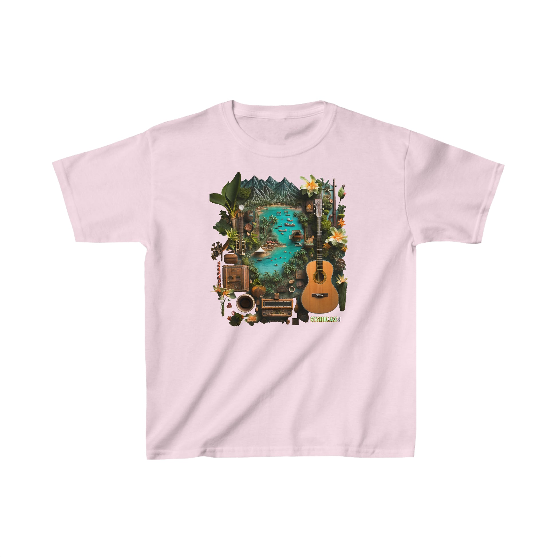Kids Heavy Cotton™ Tshirt Tahiti Tropical Knolling Abstract Art 005