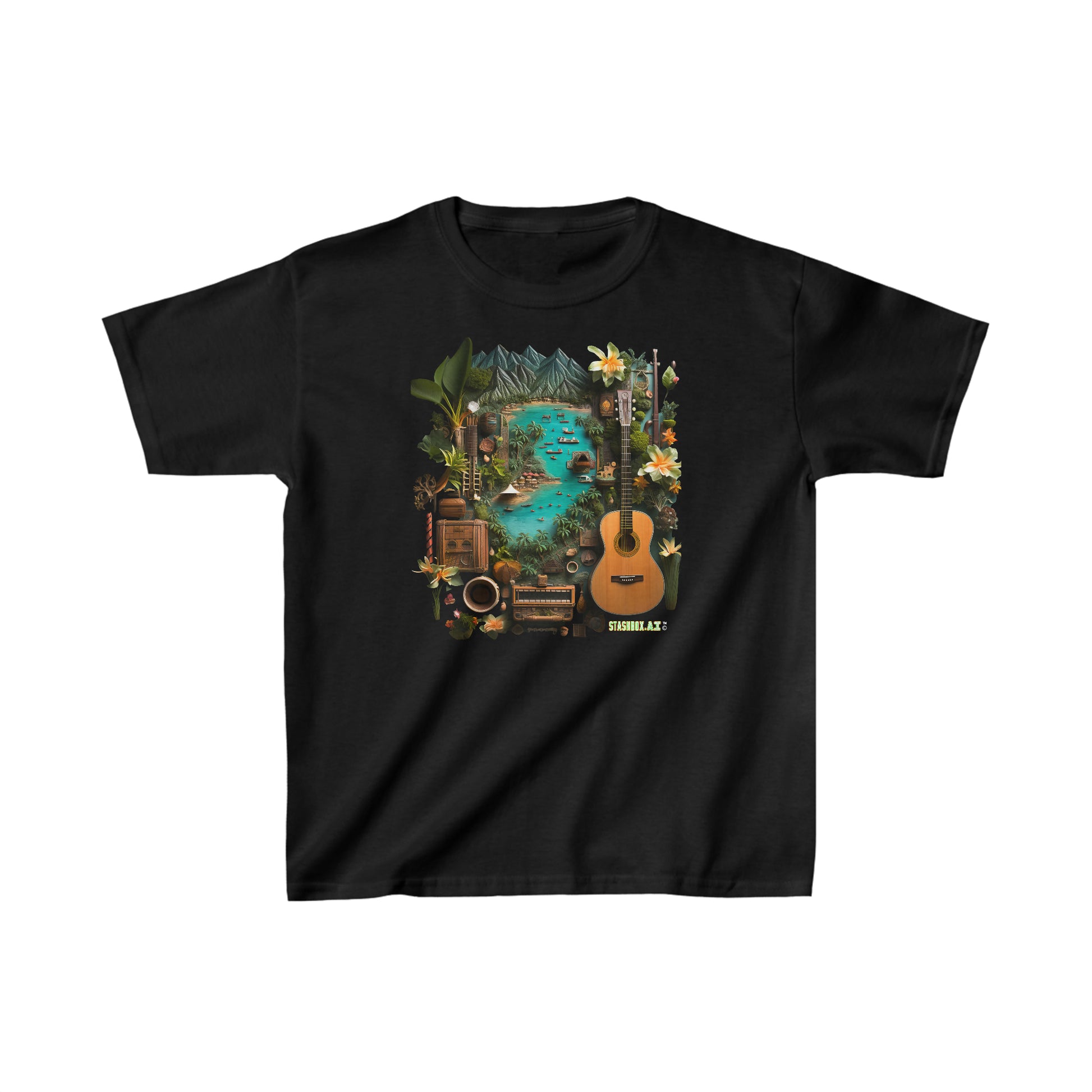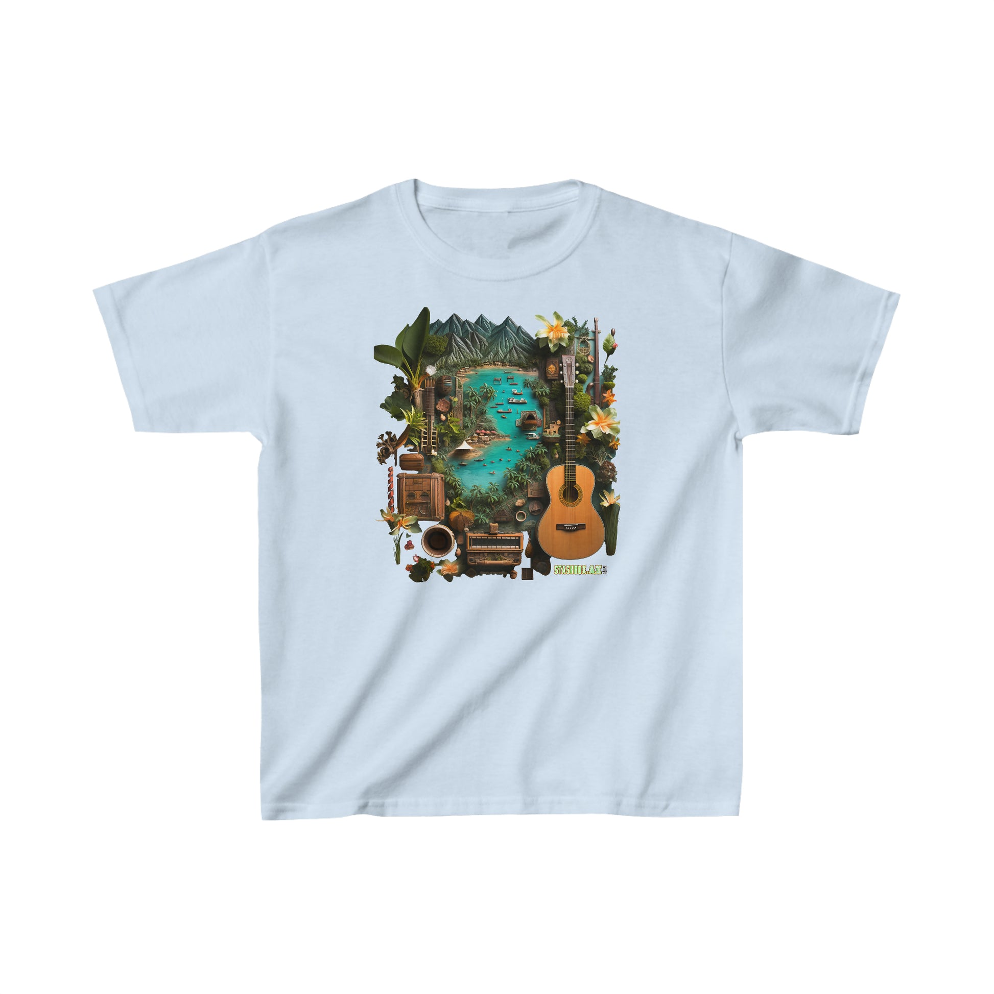 1️⃣ Small Island Acoustic Guitar T-Shirt: