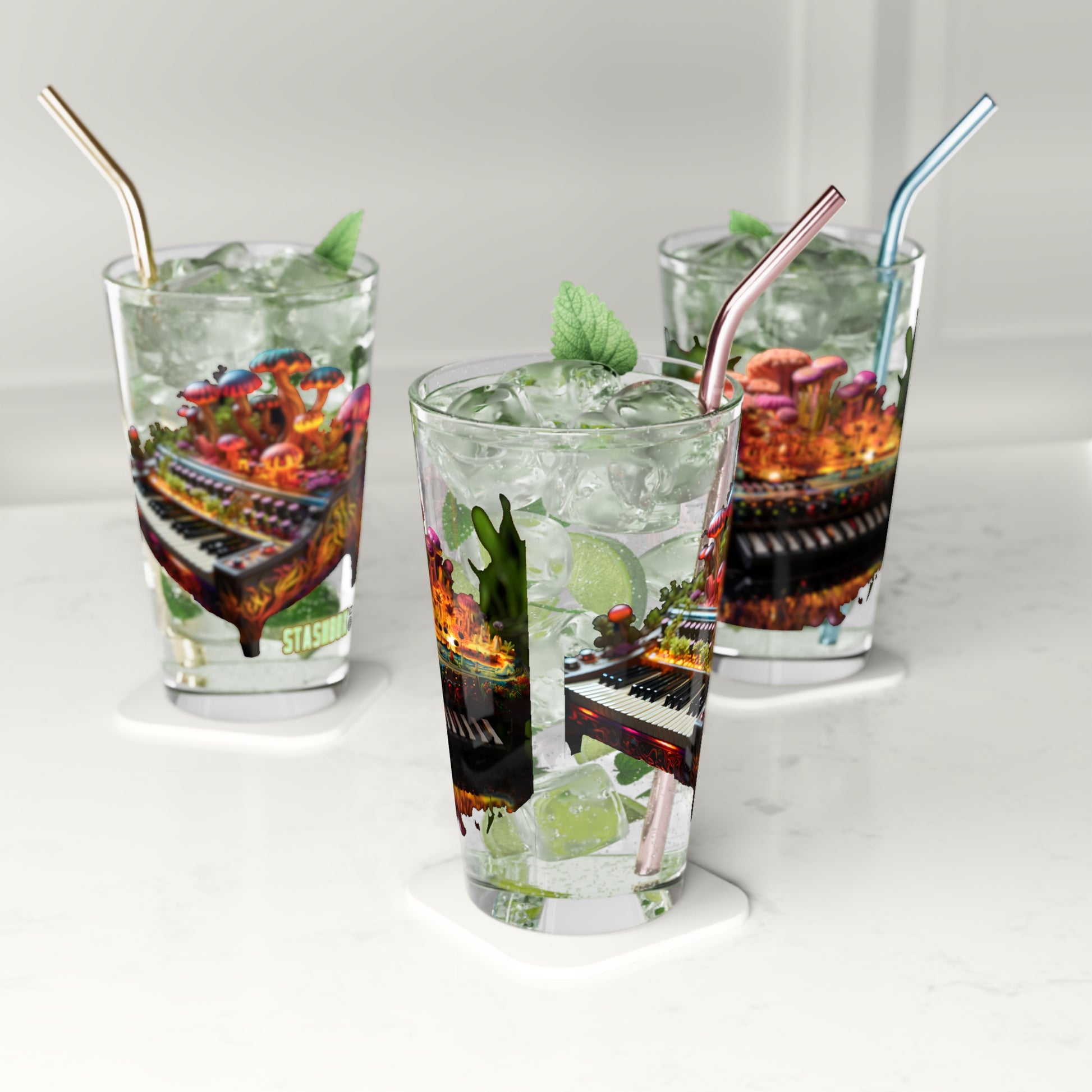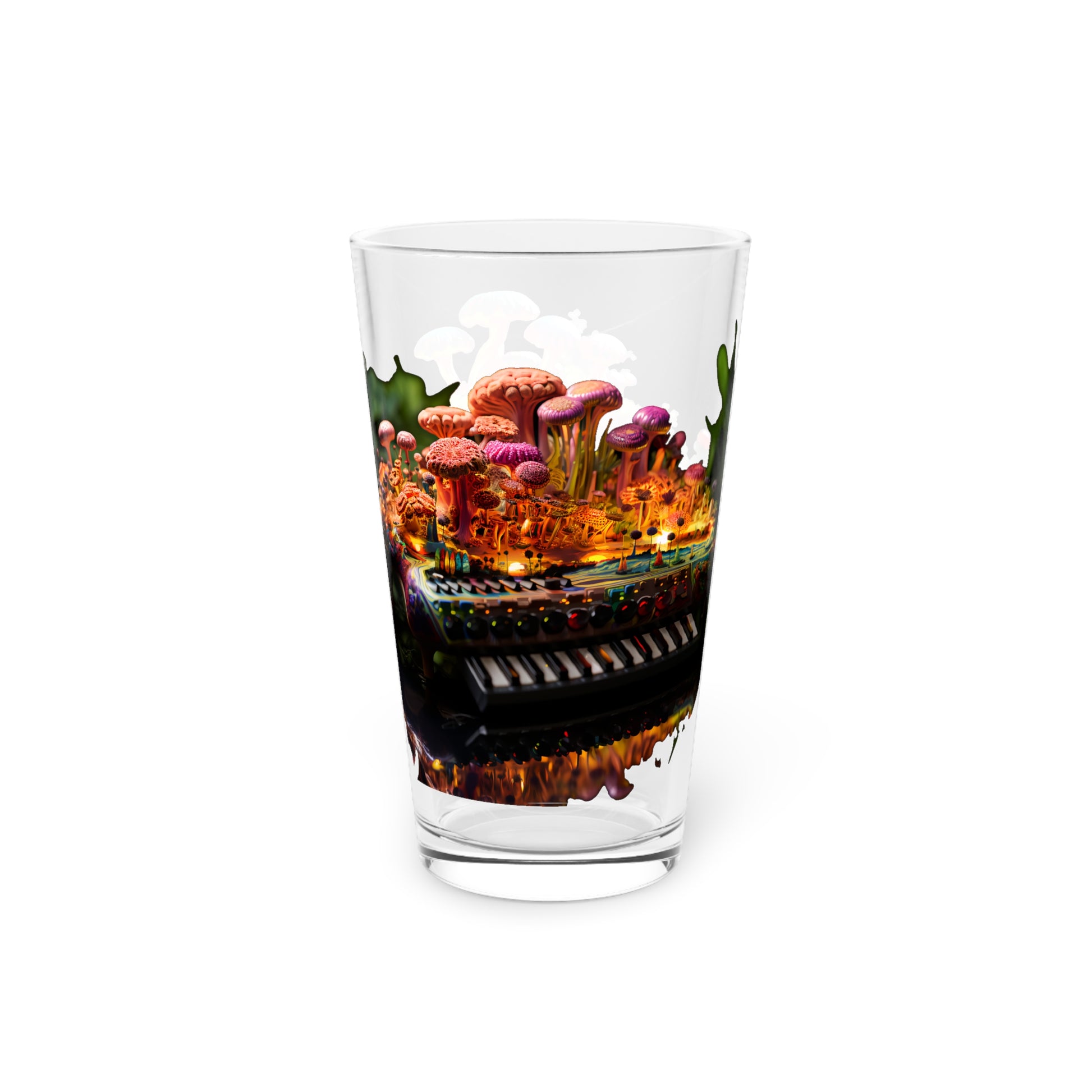 Magic Mushroom Psychedelic Mellotron Keyboard Abstract Art Pint Glass, 16oz - Music Design #004
