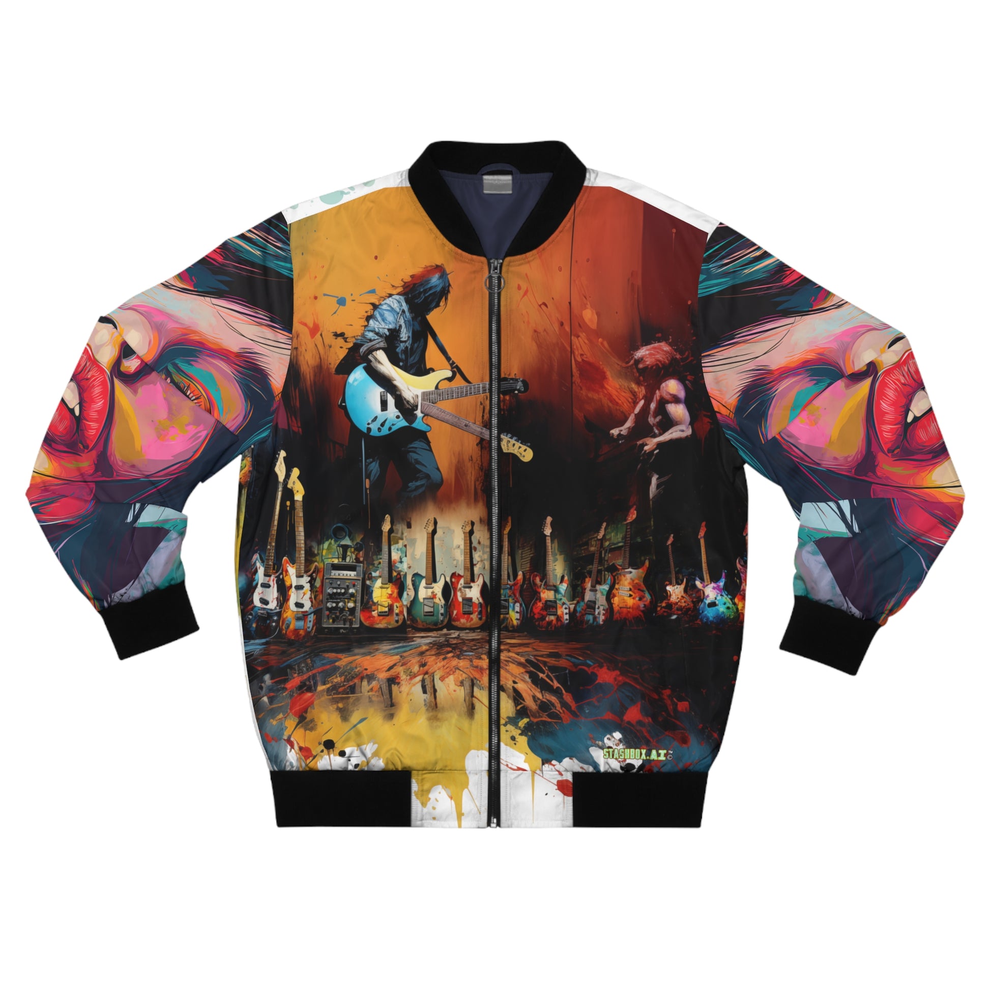 Men's Bomber Jacket (AOP) Colorful Abstract Guitars & Model