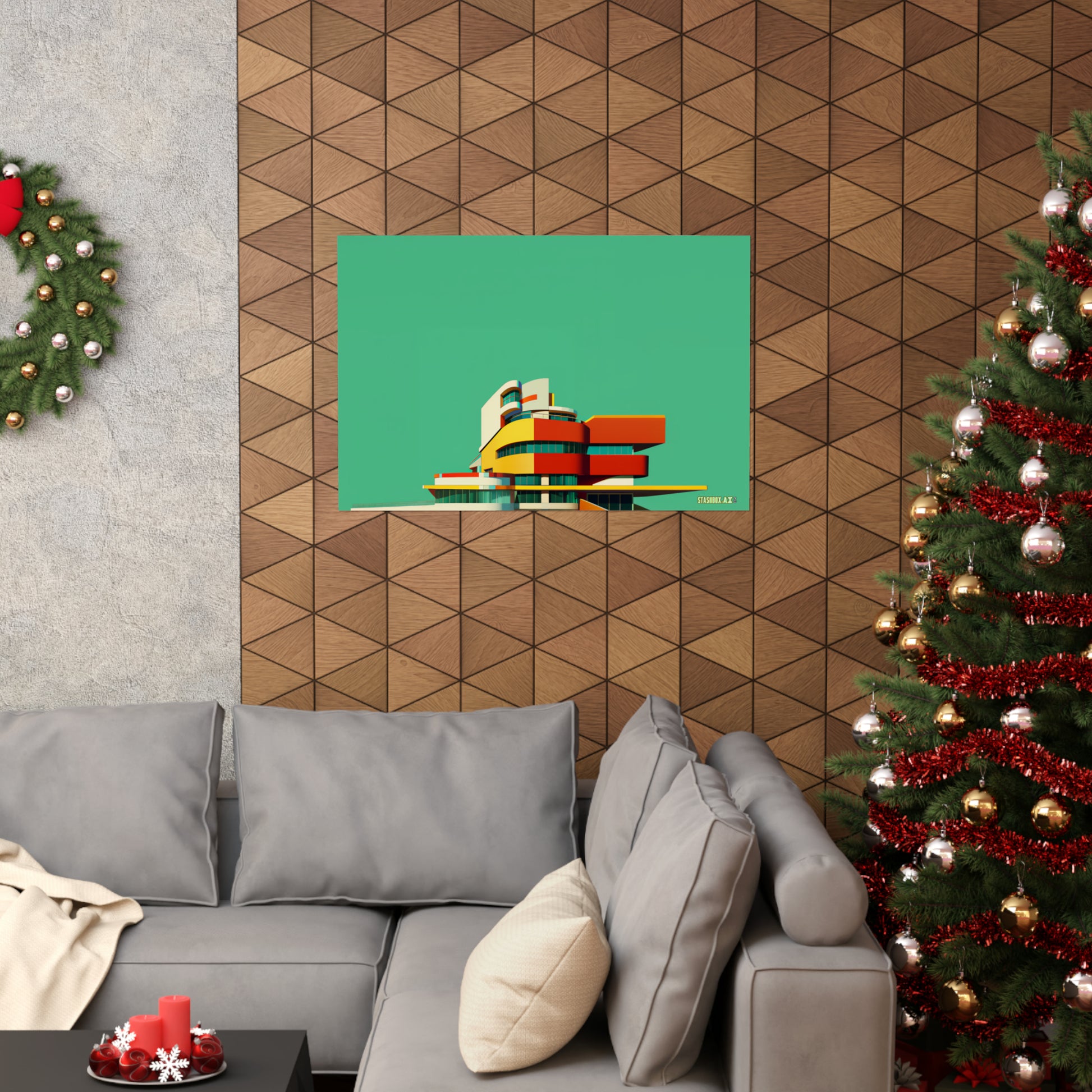 Stashbox Miami Design #001: Immerse yourself in a visual spectacle that captures the essence of Miami's architectural brilliance. The design showcases a complex of modern buildings, each layer intricately detailed, and adorned with retro pop art inspirations. The fusion of dark orange and light green hues creates a mesmerizing contrast, setting the stage for a captivating visual experience.