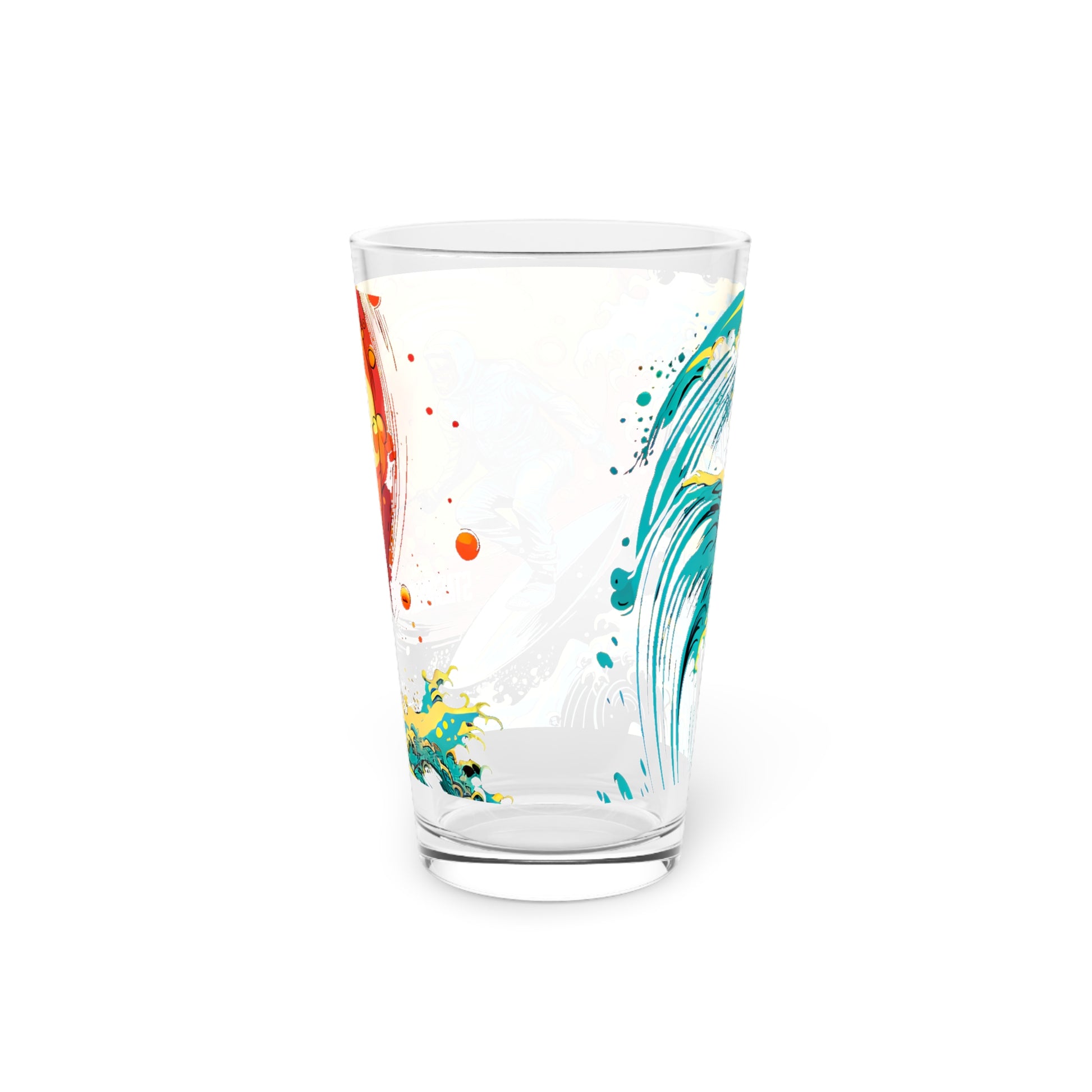 Surfing Astronaut Space Wave Art, Pint Glass, 16oz, Waves Designs #67