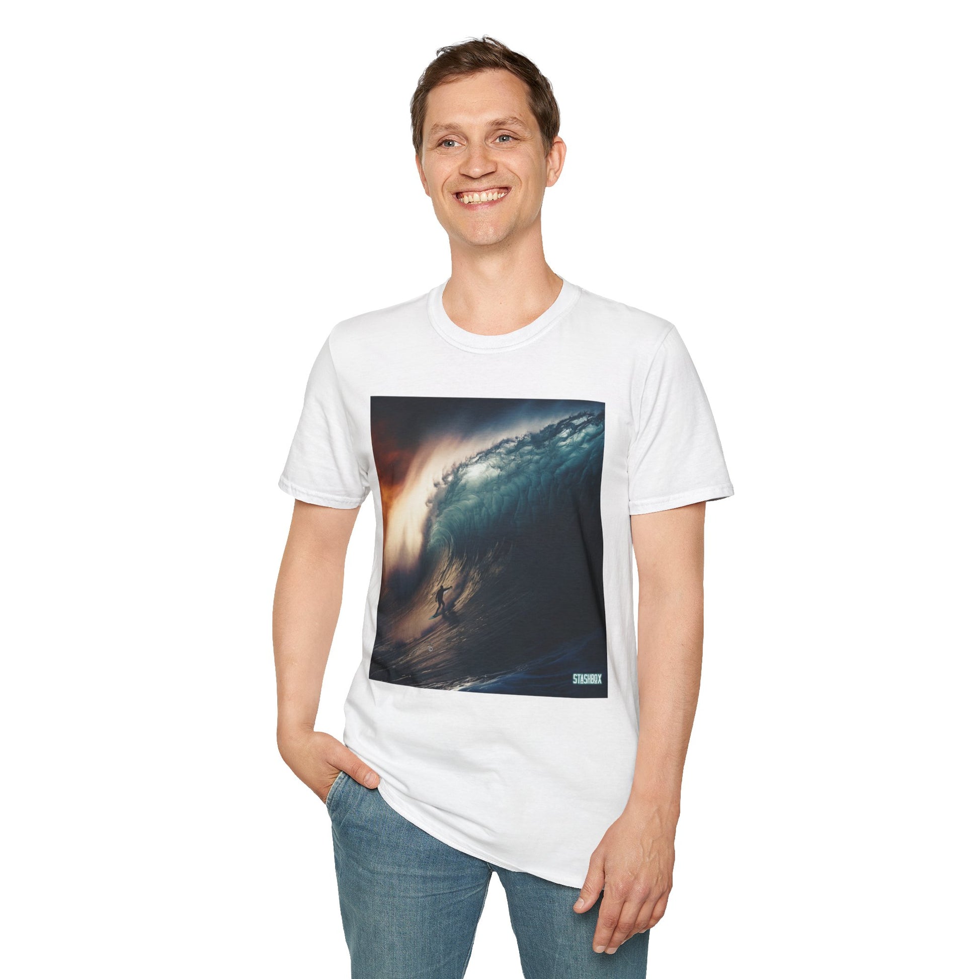 Unisex Softstyle T-Shirt Surfing Huge Wave 2 Designs on 1 48ab