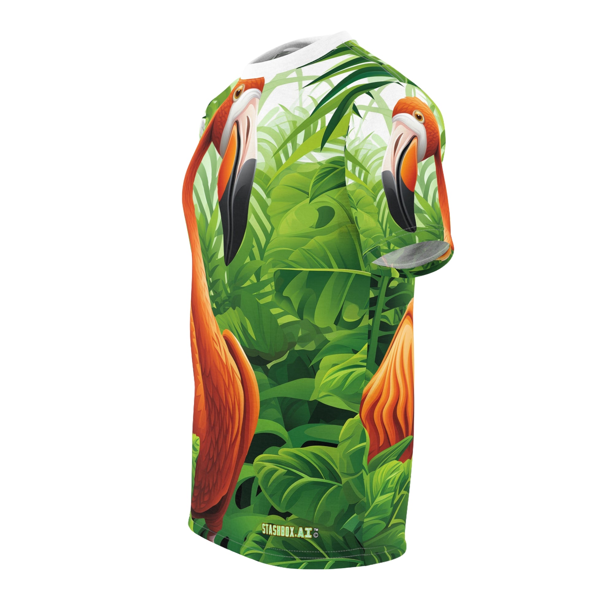 🌴🔥 Introducing: Unisex Cut & Sew T-Shirt (AOP) Flamingo Design 001 🔥🌴