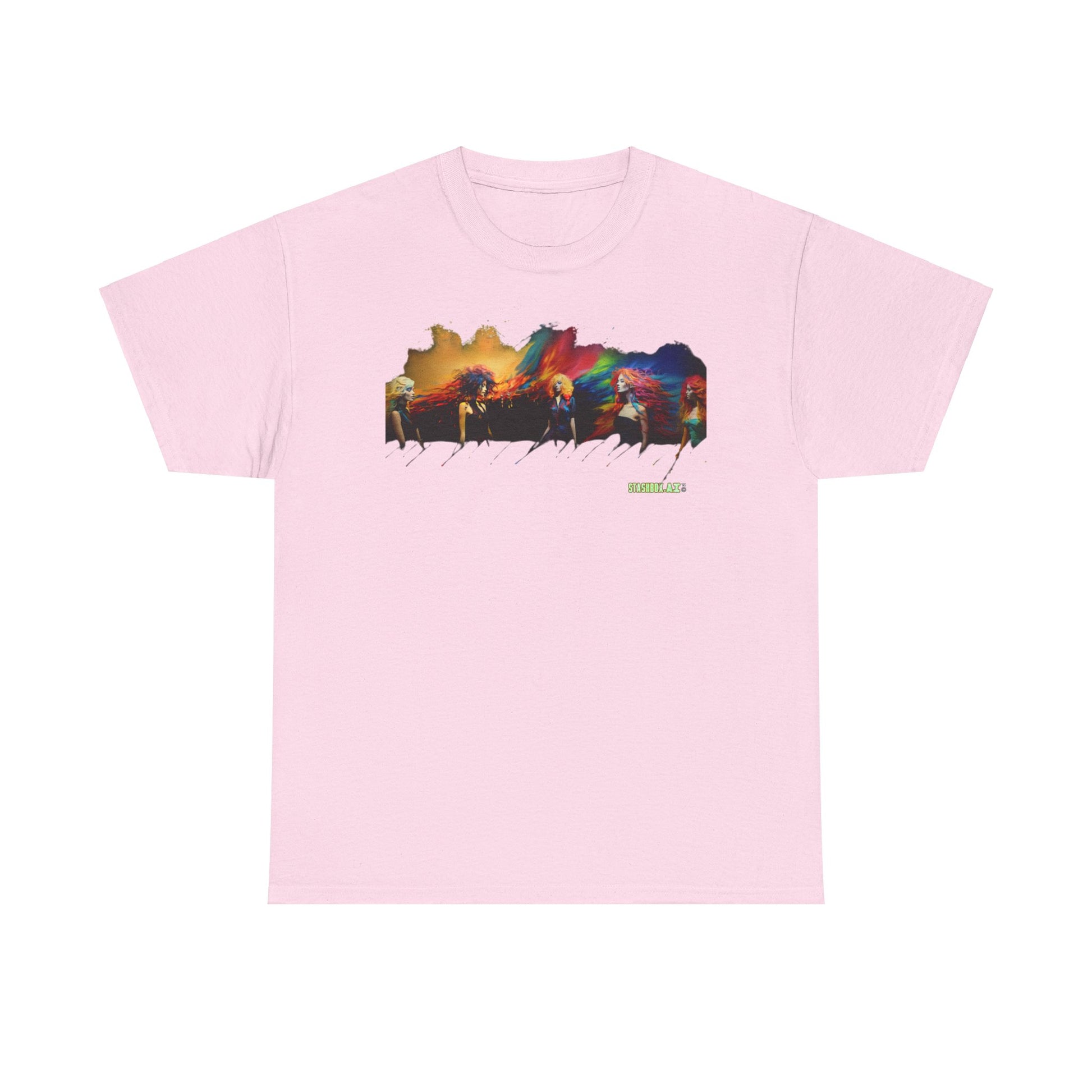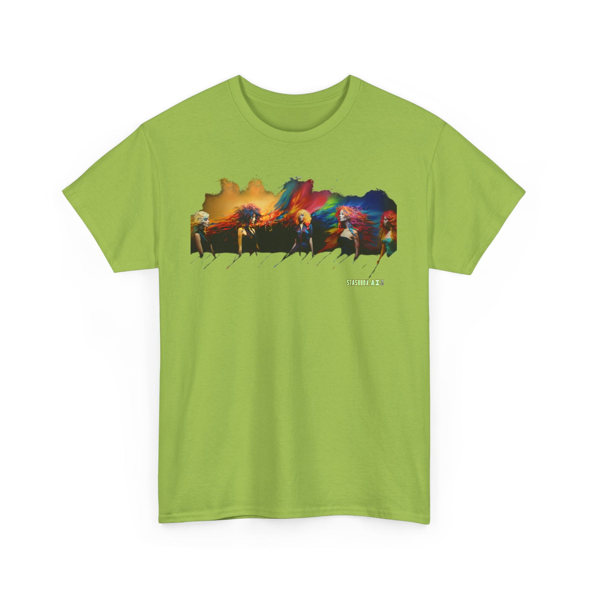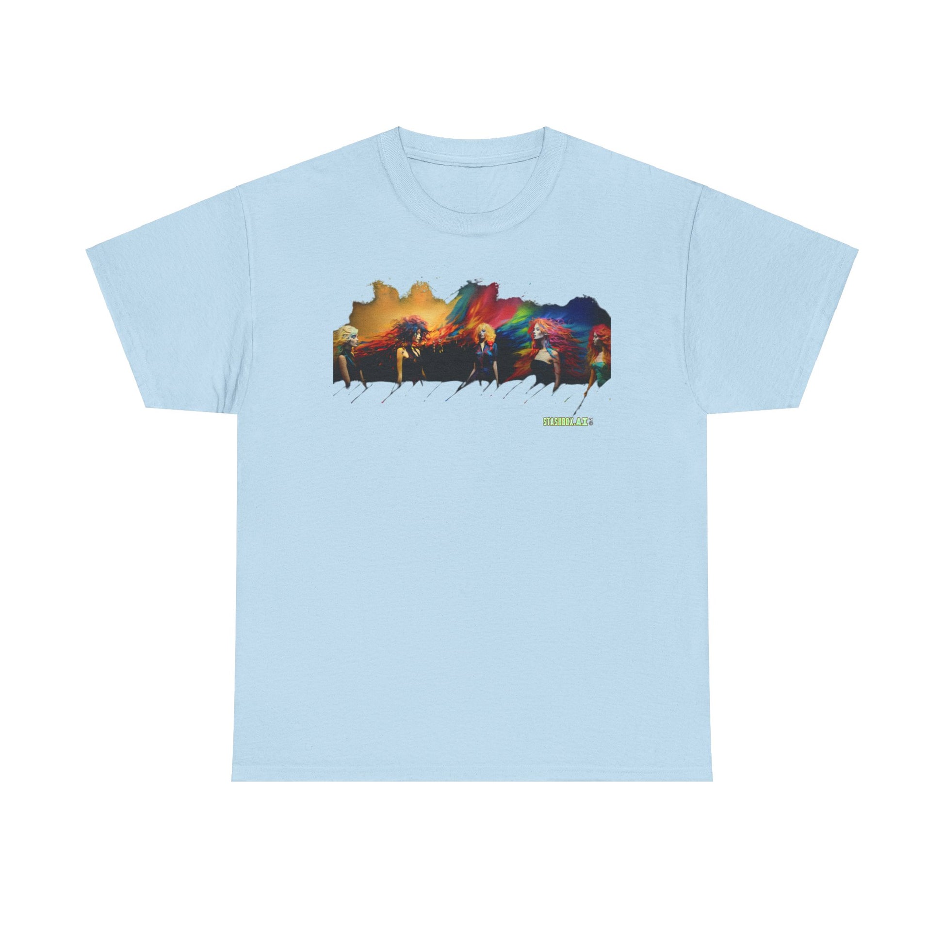 The Unisex Heavy Cotton T-Shirt Beautiful Woman Rainbow Ink Drawn 006 collection celebrates the fusion of afro-colombian themes, street-inspired fashion, and the beauty of abstract expressionism. Each shirt is a canvas of vibrant landscapes, isolated figures, and colorful patterns that transform your wardrobe into an art gallery.