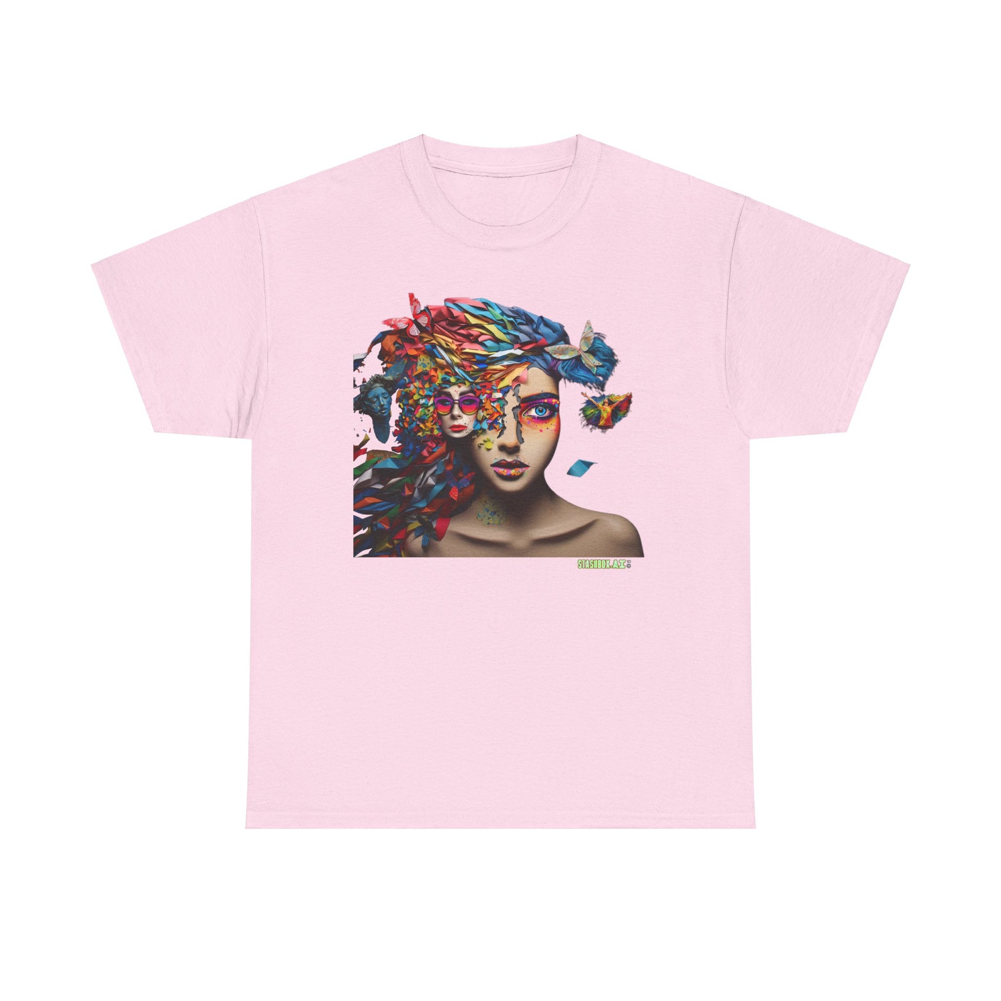 The Unisex Heavy Cotton T-Shirt Rainbow Drawn Beautiful Woman 008 collection celebrates the fusion of hyper-realistic pops and vibrant symbolism. Each shirt is a canvas of intricate details and artistic expression, turning your wardrobe into a gallery of wearable art.