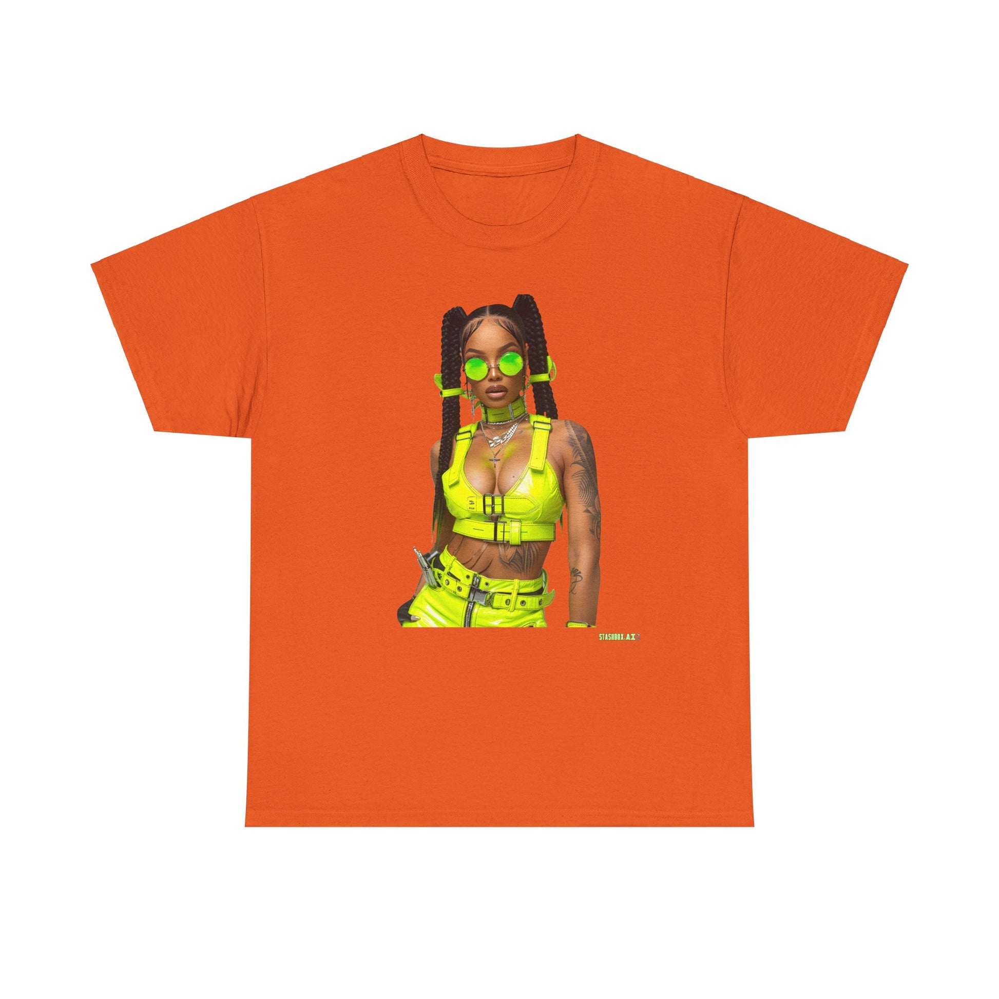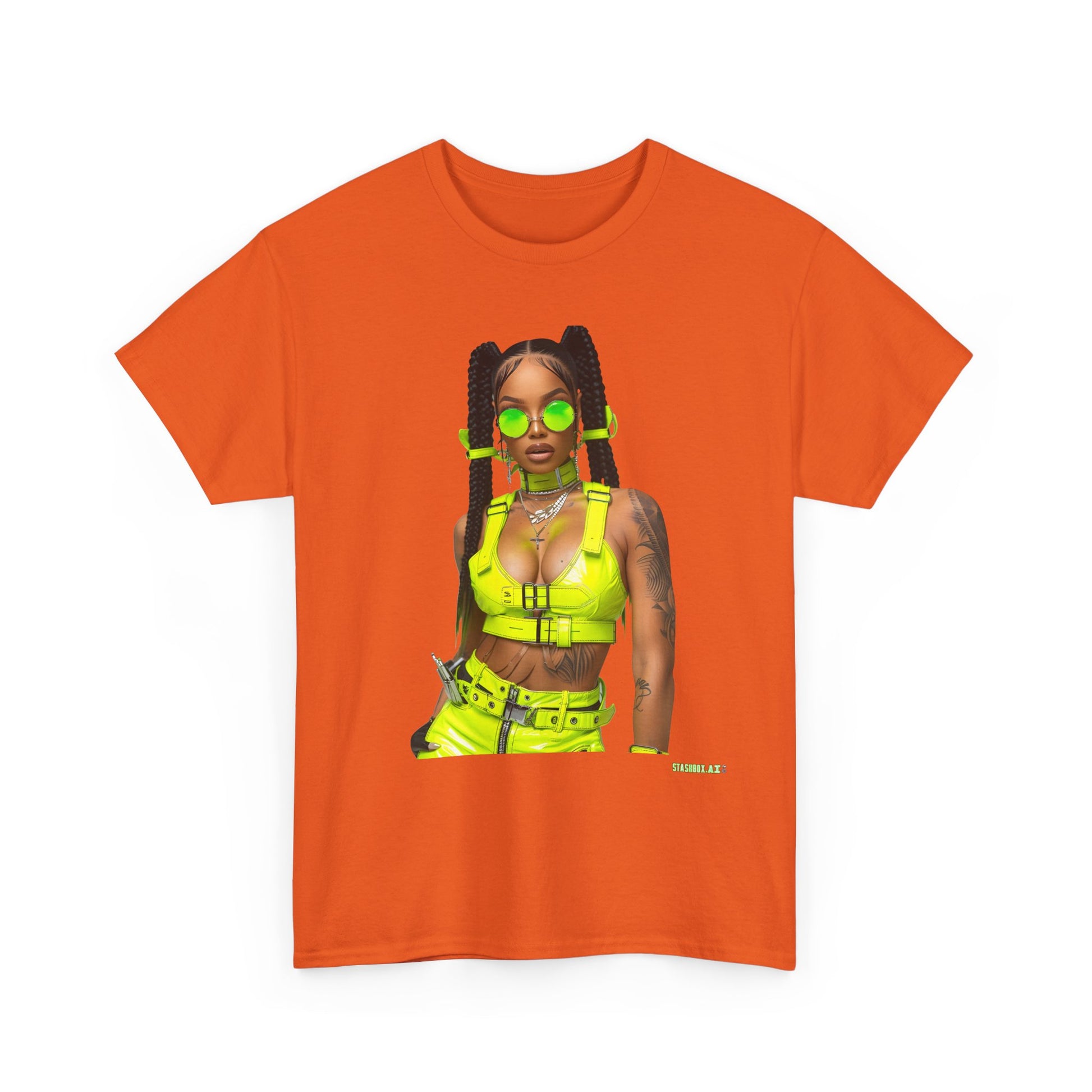 Unisex Heavy Cotton Tee Model in Hip Yellow Outfit 026