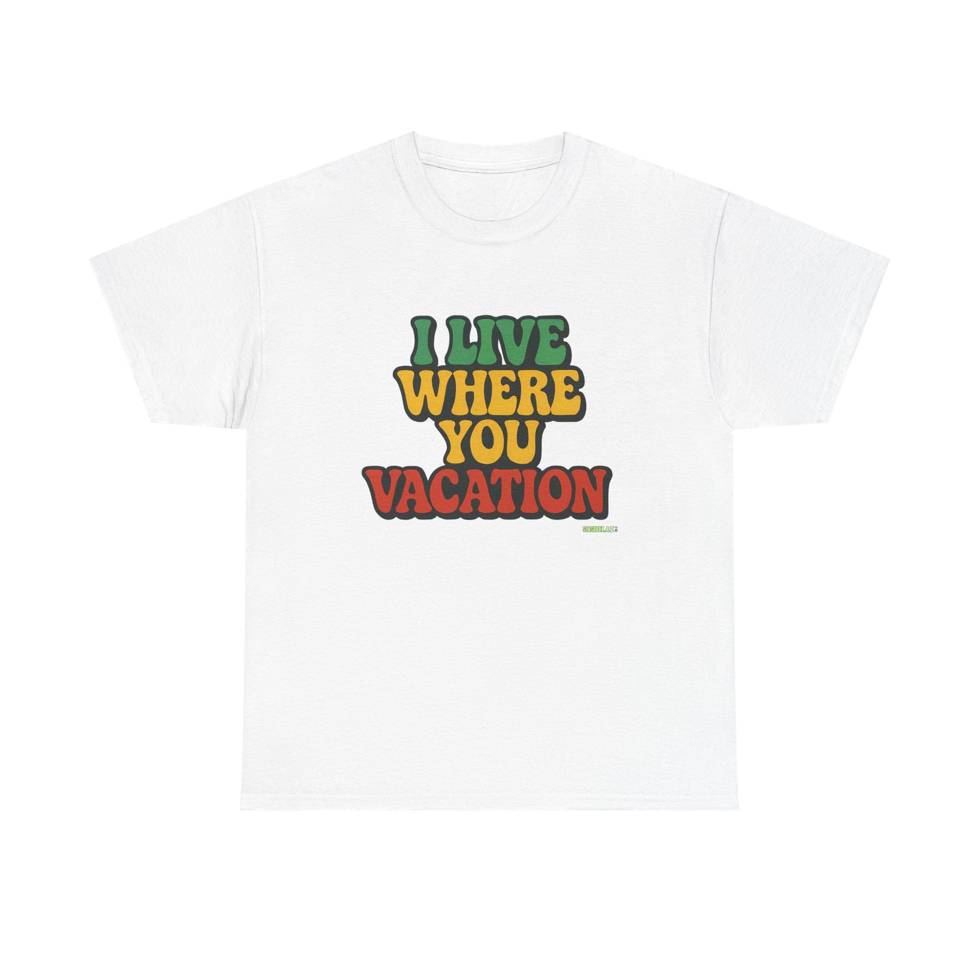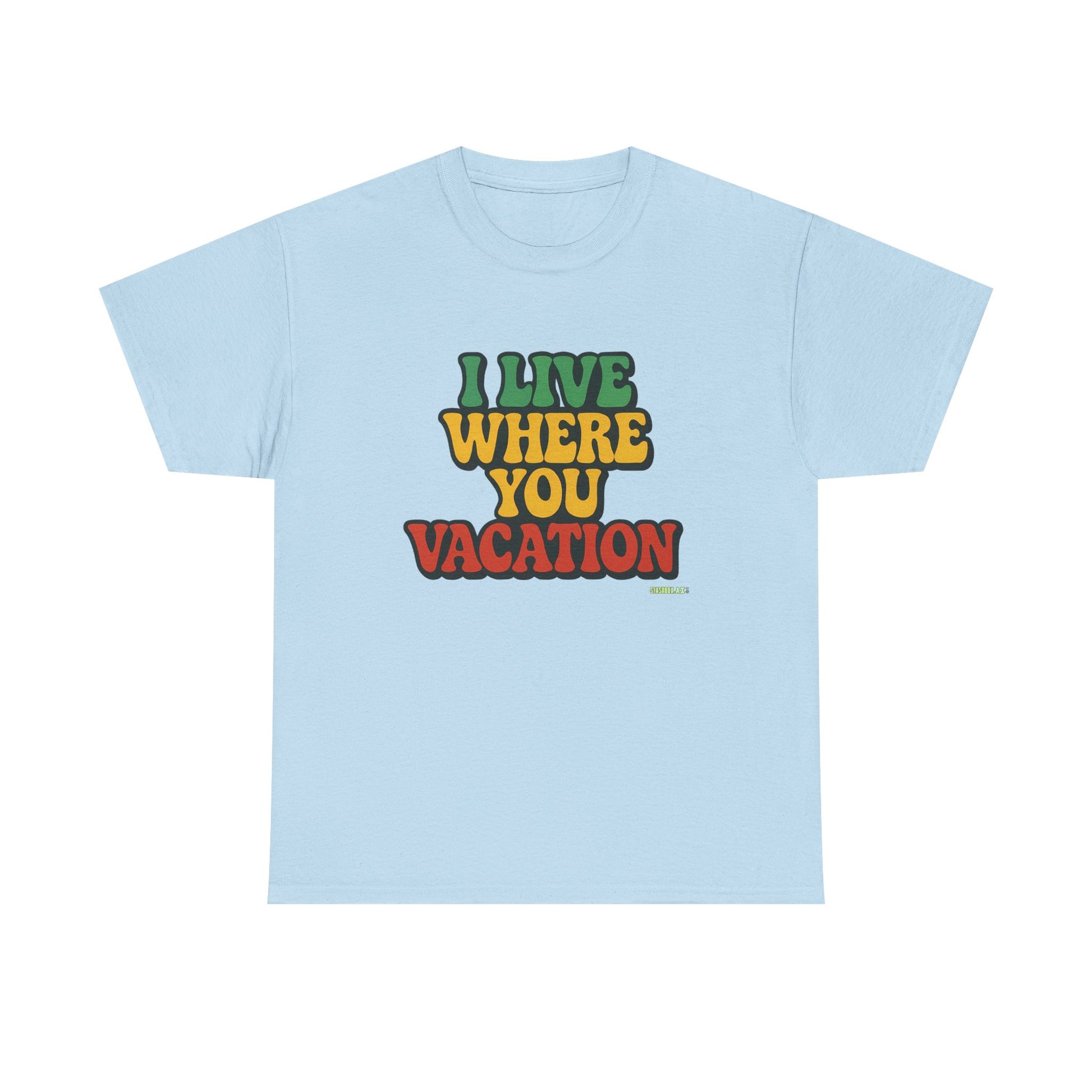 Vacation Vibes Unisex Heavy Cotton Tee - "I Live Where You Vacation"