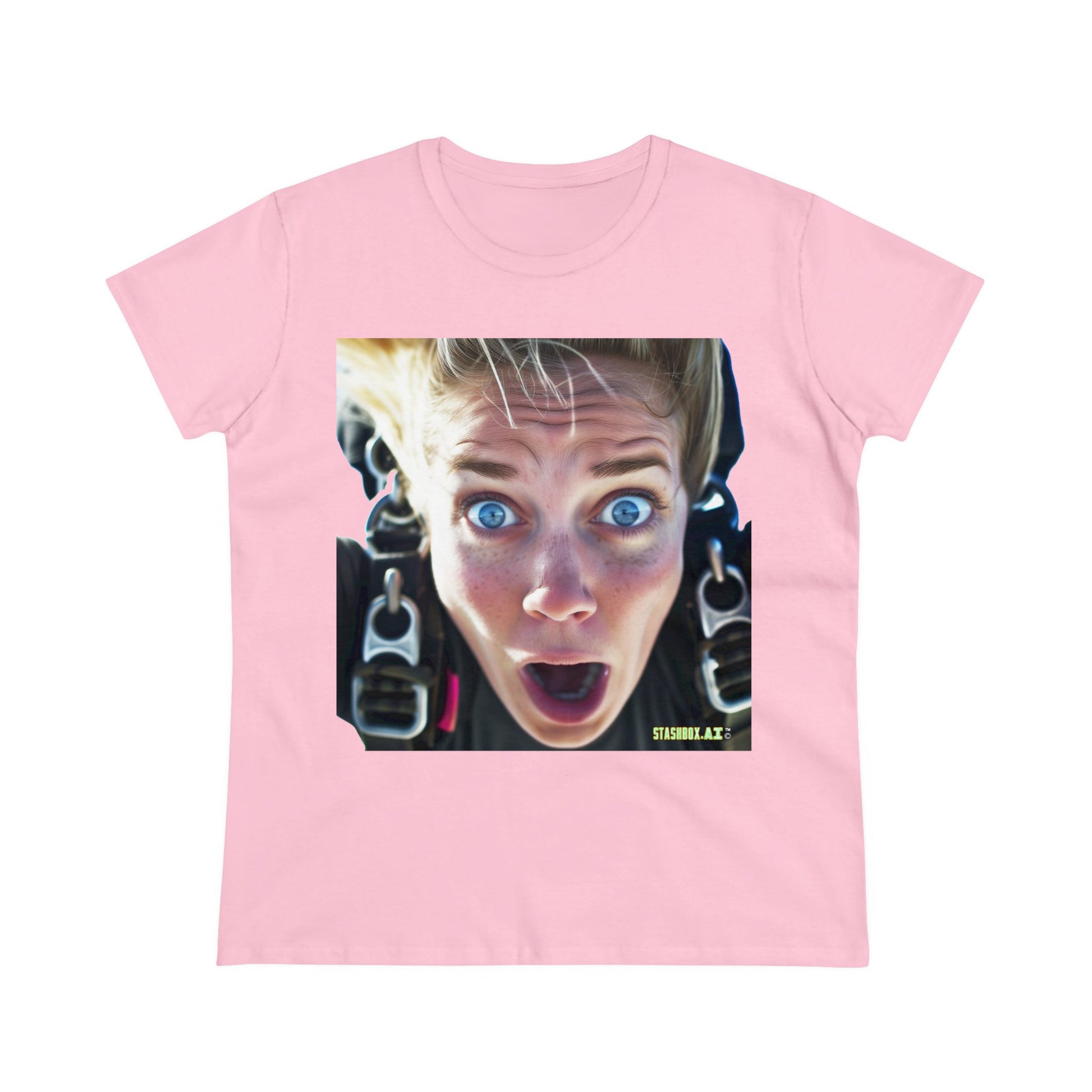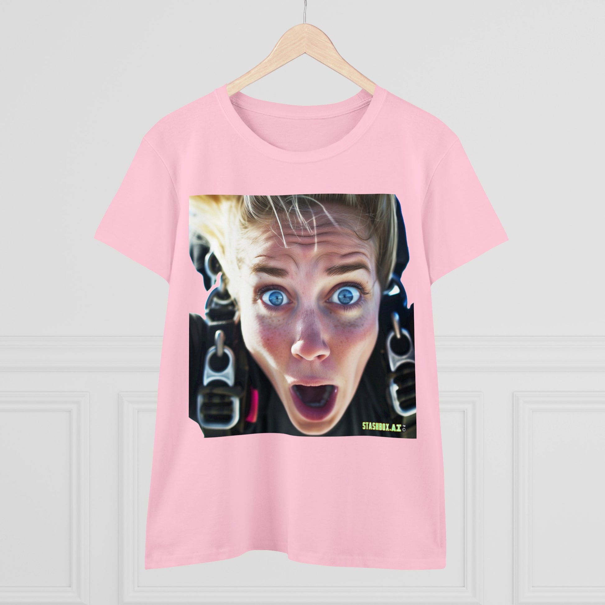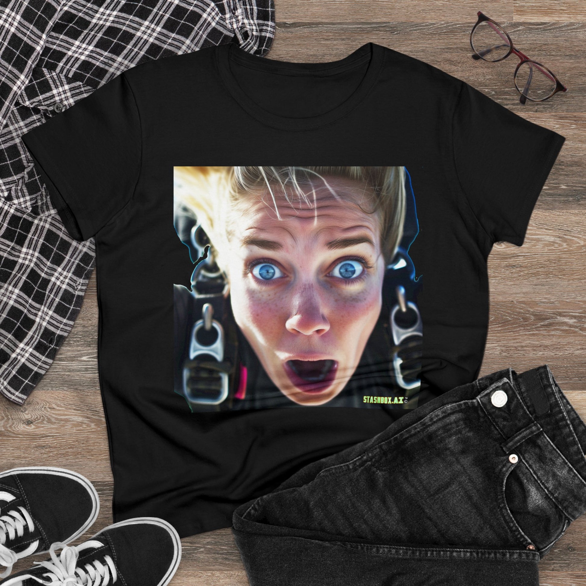 Women's Midweight Cotton Tshirt Terrified Skydiver Close Up 023